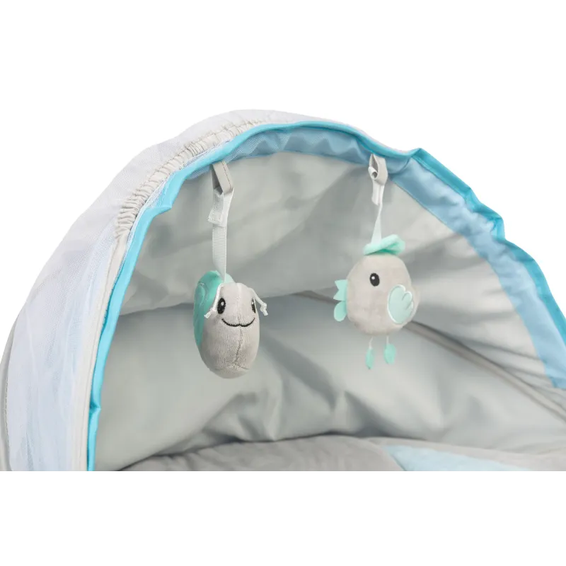 Integruotas tinklelis nuo uodų su stogeliu užtikrina veiksmingą apsaugą nuo vabzdžių tiek miegant, tiek žaidžiant lauke;