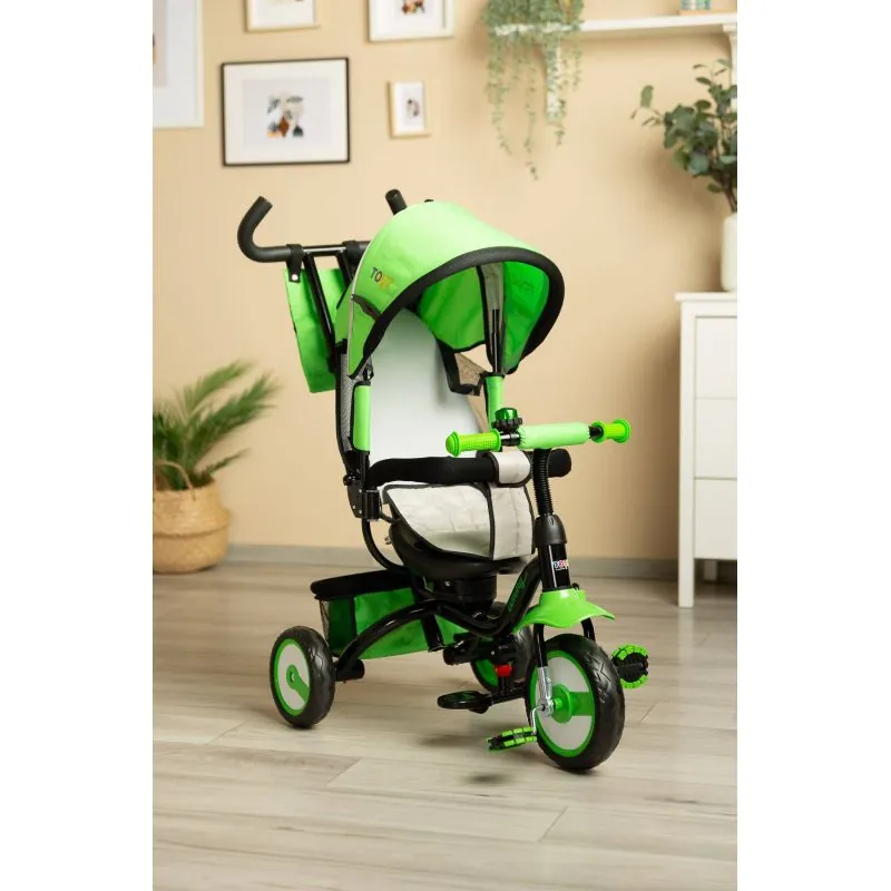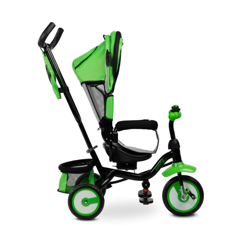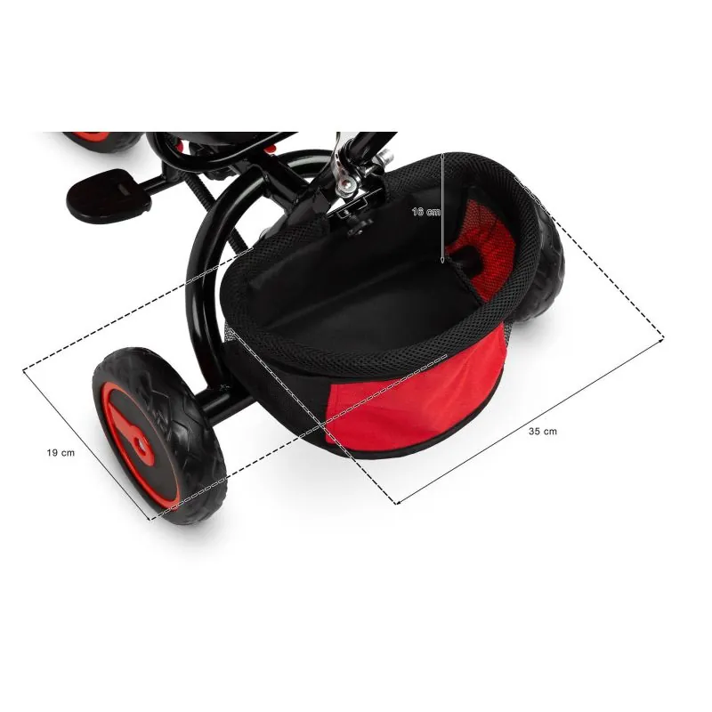 Praktisks universāls trīsritenis, kas aug kopā ar jūsu bērnu.Paredzēts 2-5 gadu veciem bērniem;Aizsargbarjera nodrošinās bērnam drošību;Kamēr bērns nebūs gatavs pats mīt trīsriteni - viņam noderēs kāju balsti, kurus vēlāk, kad tie vairs nav nepieciešami, var noņemt;Komplektā ir aizverams iepirkumu grozs un piestiprināma soma;Liels jumtiņš, aizsardzība pret sauli un vēju;Lieli gumijas riteņi;Noņemama stumšanas rokturis;Zvaniņš uz stūres;Maksimālais bērna svars 25 kg;Trīsriteņa svars; 8,8 kg;Izmēri: 105x98x36 cm;Priekšējā riteņa diametrs: 24 cm;Aizmugurējo riteņu diametrs: 20 cm.