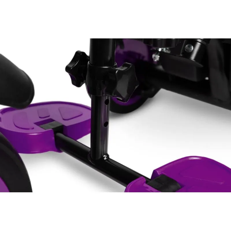 Šis modelis ir īpašs ar to, ka sēdēšanai paredzētais krēsls var griezties ap savu asi, tāpēc bērns var sēdēt un skatīties ne tikai uz priekšu, bet arī atpakaļ.Ergonomisks pieskārienam mīksts stumšanas un vadības rokturis;Saules aizsargjumtiņš;Stūre ar mīkstiem aizsargiem;Mīksts aizsargs ap sēdekli;Augsts sēdekļa atzveltne;Polipropilēna riepas;Ērts auduma groziņš rotaļlietām un citām sīkumiem;Kāju balsts ar dubultās salocīšanas mehānismu;Plati lieli riteņi: priekšējais - 24 cm, aizmugurējie - 20 cm;Trīsriteņa izmēri: 102x101x39 cm.