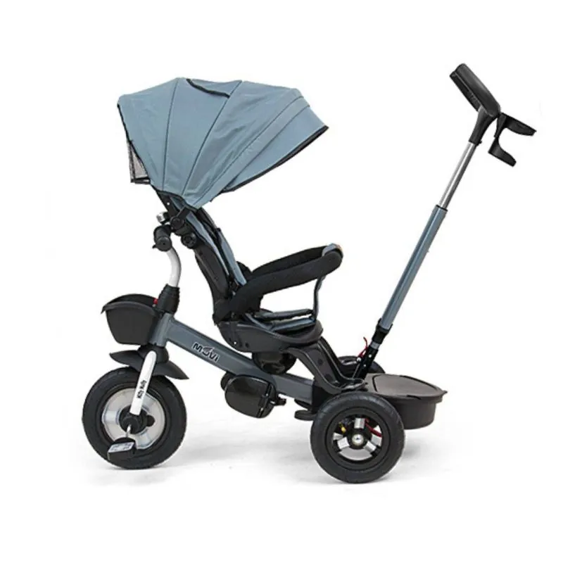 Ir aizsargājošu barjeru, trīs punktu drošības jostām un kāju balstiem.Piepūšamie riteņi ļauj klusi un ērti braukt.Noņemot stumšanas rokturi, barjeru, jumtiņu un sēdekļa pārvalku, MOVI kalpos kā trīsriteņu velosipēds.Bērns var brīvi mīt pedāļus, bet vecāki var regulēt kustības ātrumu.