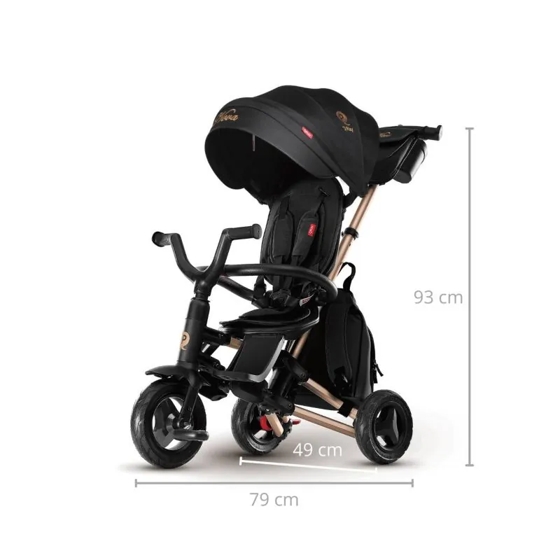 Saliekams rāmis.Regulējams vecāku kontroles roktura augstums.Aizsargājošs saules pārsegs.Regulējams sēdekļa atzveltne.5 punktu drošības jostas.Sēdeklis ar "360" funkciju - bērna pozīcija braukšanas virzienā un pret braukšanas virzienu.Vieglā un kompaktā velosipēda saliekšanas sistēma, lai būtu viegli transportēt un uzglabāt.Kāju balsts.Gumijas riteņi 8,5" un 7,5"Priekšējā riteņa brīvgaitas funkcija.Bremzes uz aizmugurējiem riteņiem.Krūzes/pudeles turētājsPLUS aprīkojumā ir mugursoma uz vecāku roktura.Paredzēts bērniem no 10 līdz 36 mēnešiem.Maksimālā slodze - ne vairāk kā 25 kg.Produkta svars: 7,5 kgIzstrādājuma izmērs: 79x49x93 cmSalocītā izstrādājuma izmērs: 37x37x67cm
