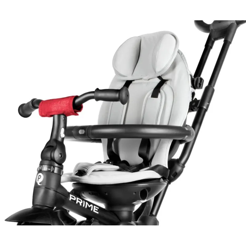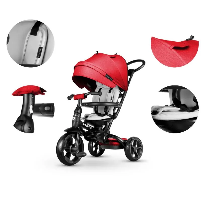 Pagriežams sēdeklis, vadība ar pogas nospiešanu – braukšana uz priekšu vai atpakaļ.Regulējamas teleskopiskās roktura vadība ar rokturi (2 soļi).Iespēja salocīt stūri.Priekšējā brīvgaitas ieslēgšanas/izslēgšanas sistēma.Funkcija "brīvais stūris" vadāma ar rokturi.Piecu punktu drošības jostas ar plecu spilventiņiem.Mīksts un elpojošs sēdekļa spilvens ar konturētu bērna galvas aizsardzību.Ērts, 2 soļos regulējams atzveltnis, guļus pozīcija.Noņemams sēdekļa pārvalks.Salokāms pārsegs + noņemams jumtiņš no materiāla, kas aizsargā pret UV stariem ar logu.EVA mīkstie riteņi.10,5" putu priekšējais ritenis.Putu aizmugurējie riteņi 8,5".Augstas kvalitātes tērauda rāmis.Priekšējam ritenim ir pārsegs, lai kāja neiekļūtu.Aizmugurējā soma ar rāvējslēdzēju.Viegls tīrāms, noņemams aizsargstienis.Neslīdoši pedāļi.Papildu kāju platforma mazākiem bērniem.Zīdaiņa kāju balsts.Gumijas neslīdoši rokturi.Riteņi ar gultņiem.Aizmugurējā riteņa bremze.Pagrieziena ierobežotājs.Jostu regulēšana.Pārsegs ir vietā, noņemot vecāku rokturi.Vecums 10-72 mēneši.Tas atbilst stingriem Eiropas drošības standartu prasībām.