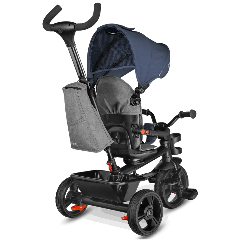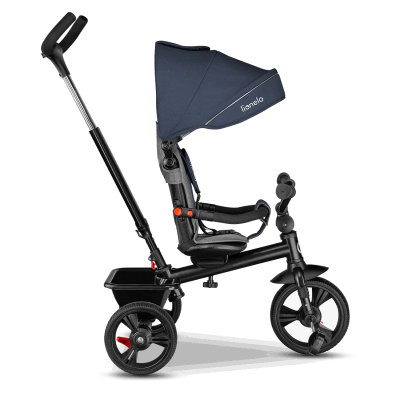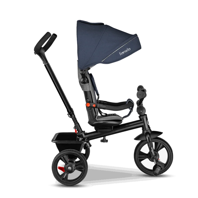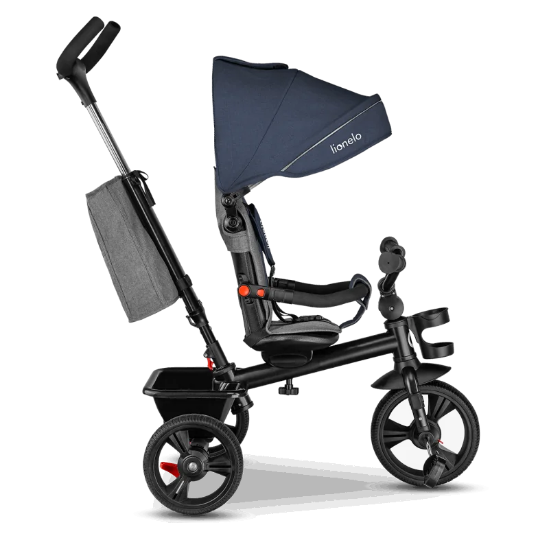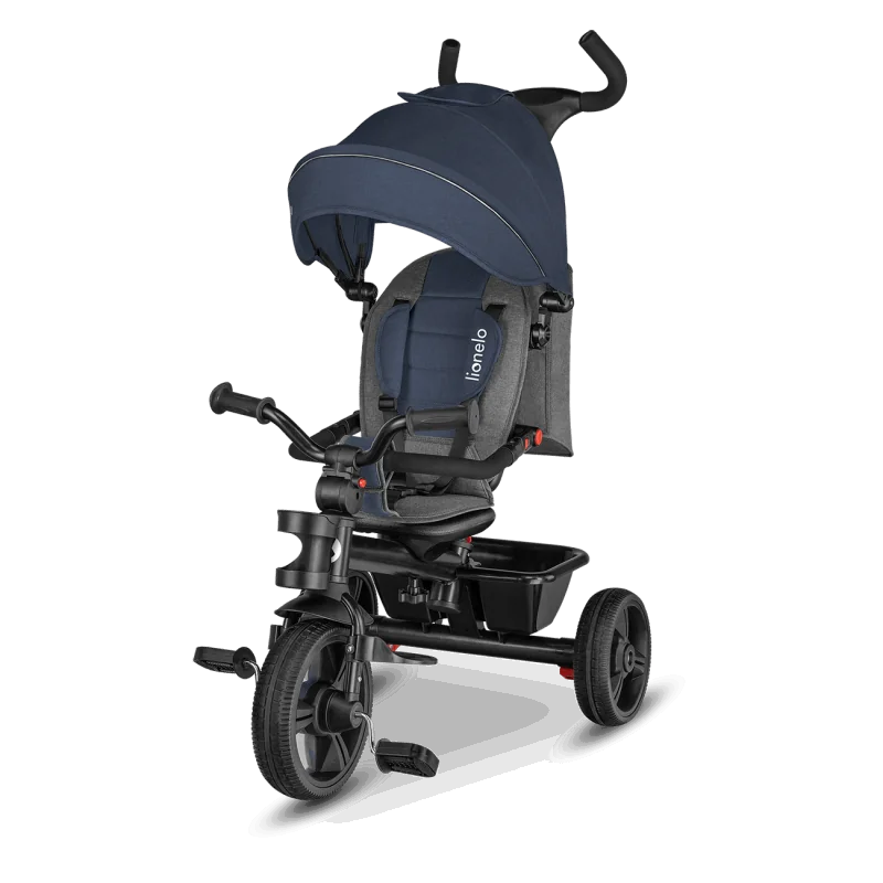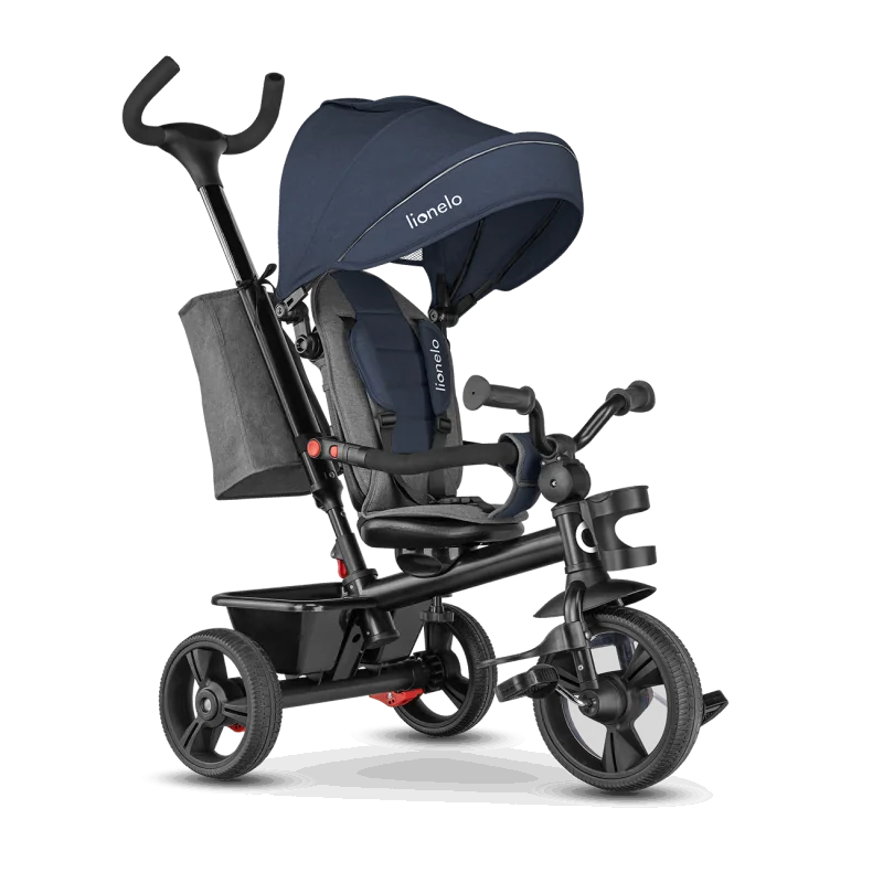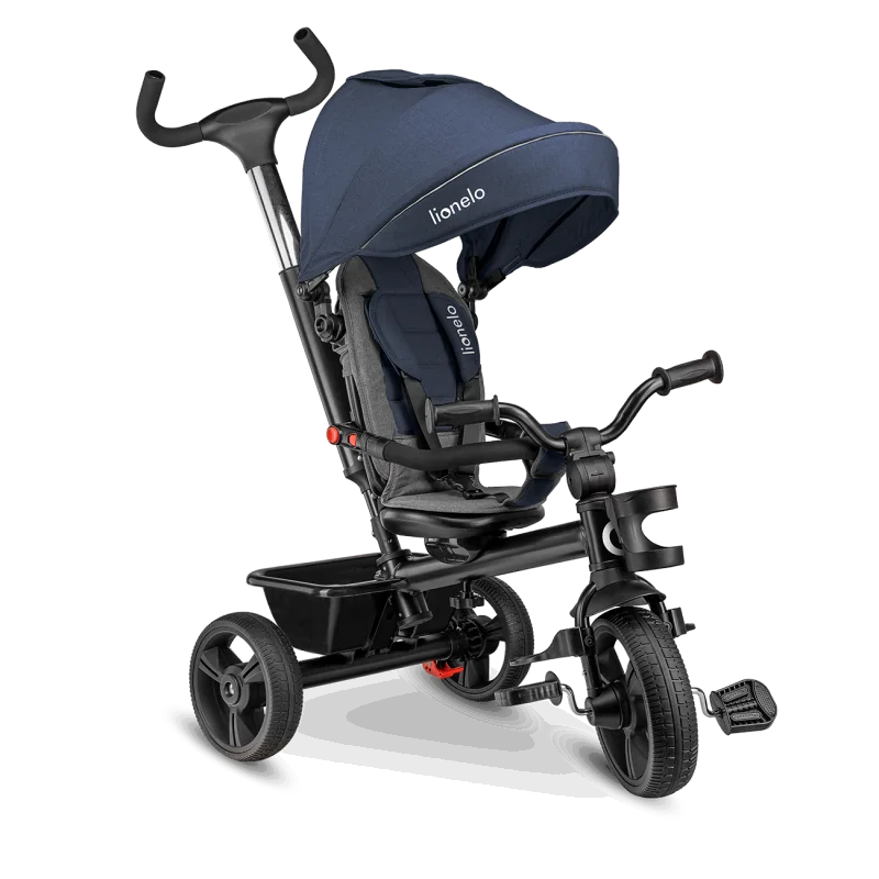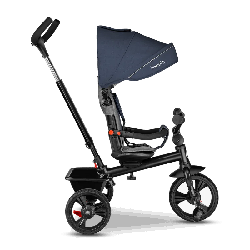 3 punktu jostas uztur pareizā pozīcijā.Stienis nodrošina papildu aizsardzību. Trīsritenim uzstādīti neslīdoši rokturi.Atstarotāji uz jumtiņa (aizsardzība pret lietu un sauli) uzsver trīsriteņa Lionelo Haari redzamību uz ceļa! Atbilst Eiropas standartam EN 71.Ērts kāju balsts. Riteņi ir izturīgi, izturīgi pret mehāniskiem bojājumiem.Piedāvā labu saķeri ar zemi.Regulējams rokturis lieliski pielāgosies augumam.Viegli salokāms transportēšanai vai uzglabāšanai. Patīkami polsterējumi nodrošinās bērna komfortu braucot. Komplektā grozs rotaļlietām un praktisks krūzes vai pudeles turētājs.360° sēdeklis ļauj braukt uz priekšu vai atpakaļ.