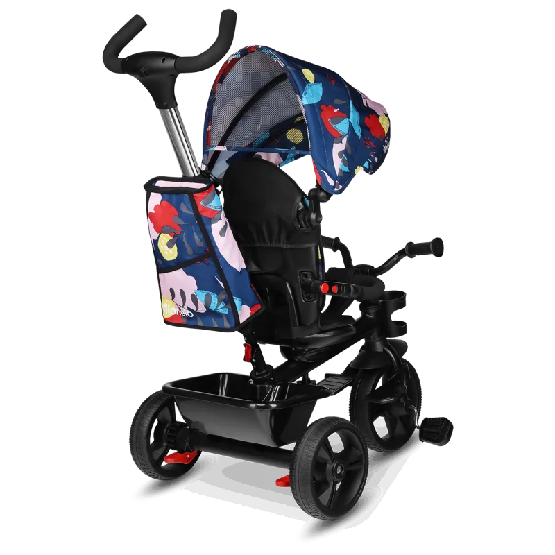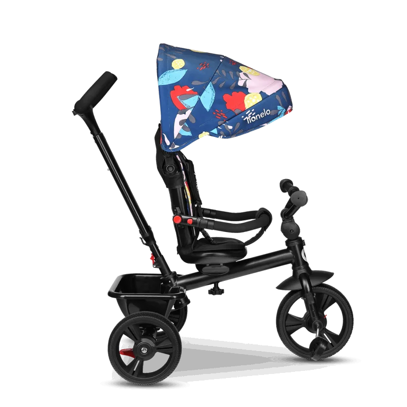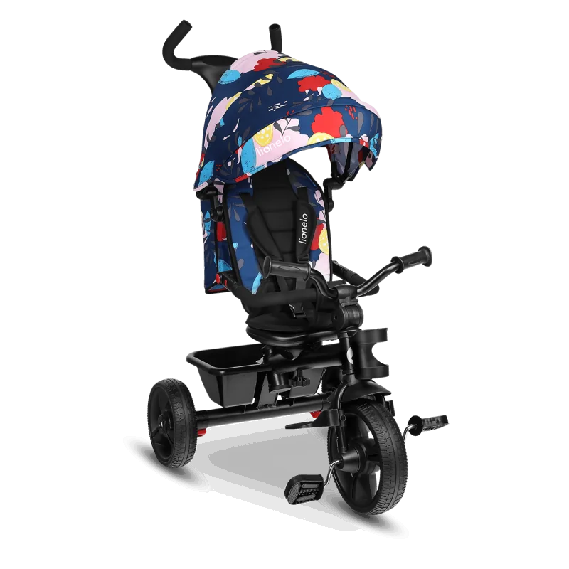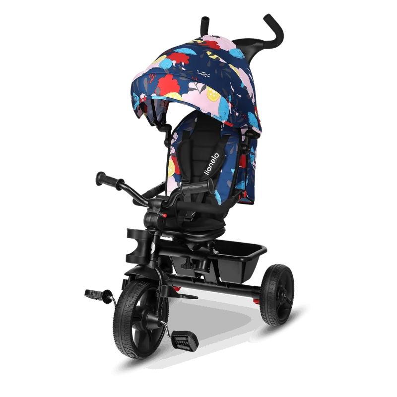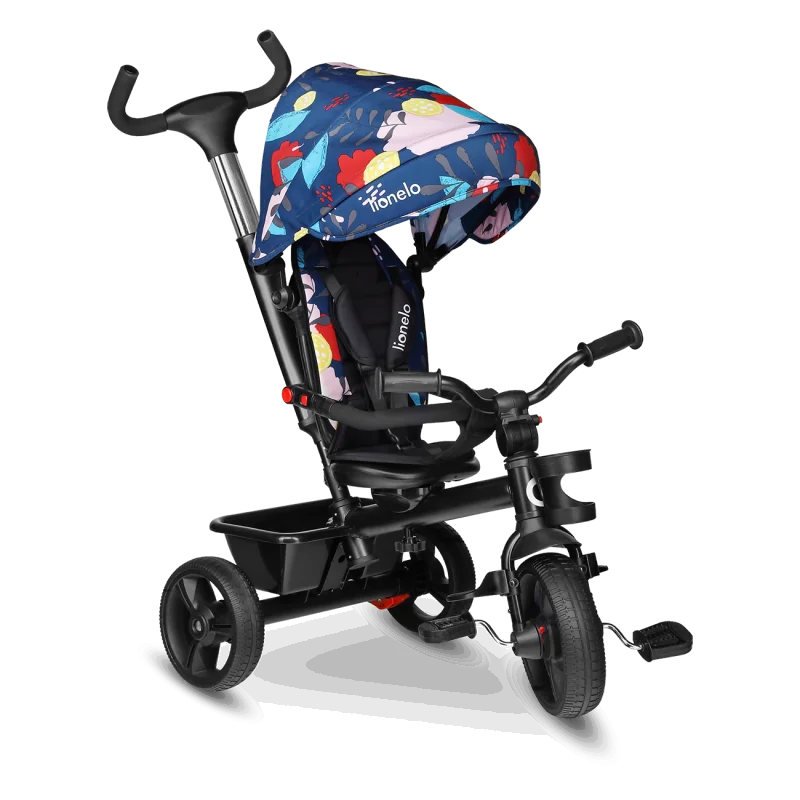 3 punktu jostas nodrošina pareizu pozīciju.Stienis nodrošina papildu aizsardzību. Trīsritenim ir neslīdoši rokturi.Atstarotāji uz jumta (aizsardzība pret lietu un sauli) uzsver Lionelo Haari trīsriteņa redzamību uz ceļa! Atbilst Eiropas standartam EN 71.Ērts kāju balsts. Riteņi ir izturīgi, izturīgi pret mehāniskiem bojājumiem.Nodrošina labu saķeri ar zemi.Regulējams rokturis lieliski pielāgosies augumam.Viegli salokāms transportēšanai vai uzglabāšanai. Patīkami polsterējumi nodrošinās bērna komfortu brauciena laikā. Komplektā ietilpst rotaļlietu grozs un praktisks krūzes vai pudeles turētājs.360° sēdeklis ļauj braukt uz priekšu vai atpakaļ.