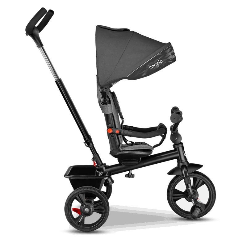 3 punktu jostas nodrošina pareizu pozīciju.Buomelis nodrošina papildu aizsardzību. Trīsritenī uzstādīti neslīdoši rokturi.Atstarotāji uz jumtiņa (aizsardzība pret lietu un sauli) uzsver trīsriteņa Lionelo Haari redzamību uz ceļa! Atbilst Eiropas standartam EN 71.Ērts kāju balsts. Riteņi ir izturīgi, izturīgi pret mehāniskiem bojājumiem.Piedāvā labu saķeri ar zemi.Regulējams rokturis lieliski pielāgosies augumam.Viegli salokāms transportēšanai vai uzglabāšanai. Patīkami polsterējumi nodrošinās bērna komfortu braucot. Komplektā groziņš rotaļlietām un praktisks krūzes vai pudeles turētājs.360° sēdeklis ļauj braukt uz priekšu vai atpakaļ.