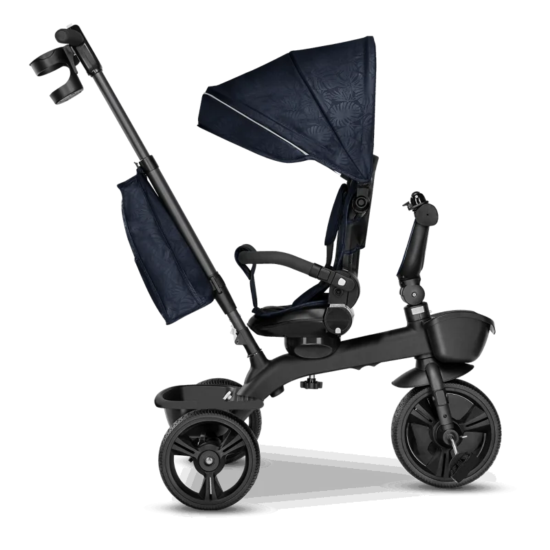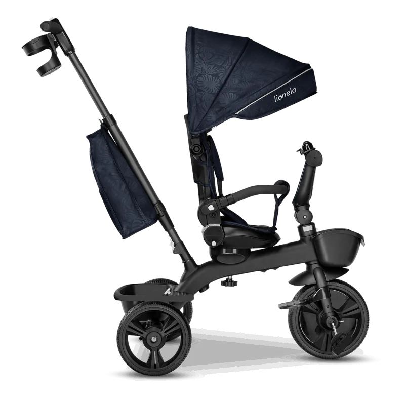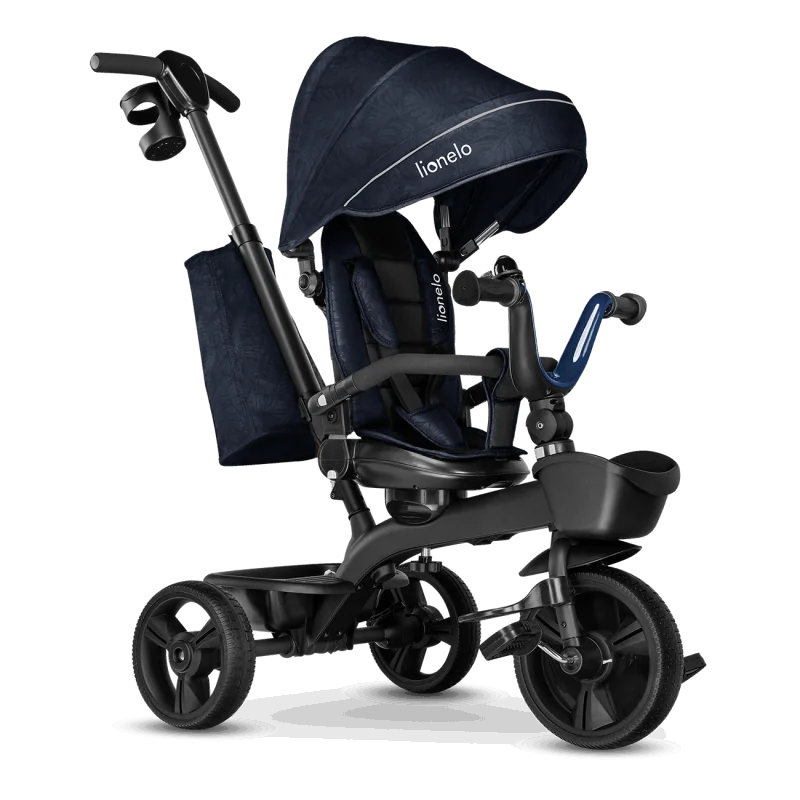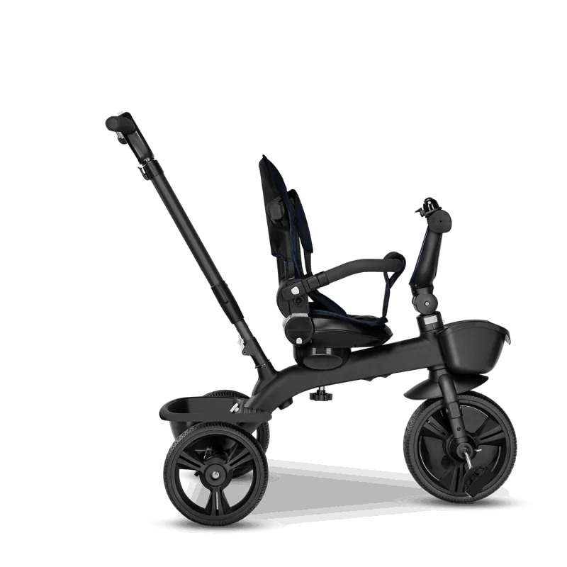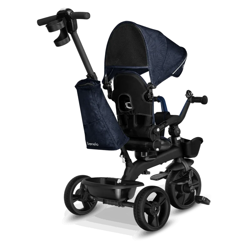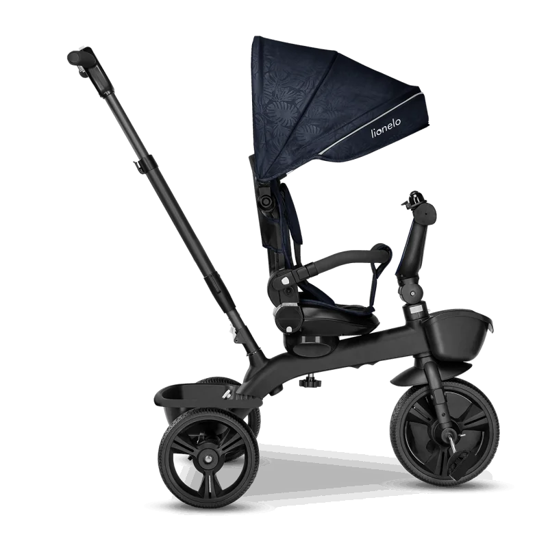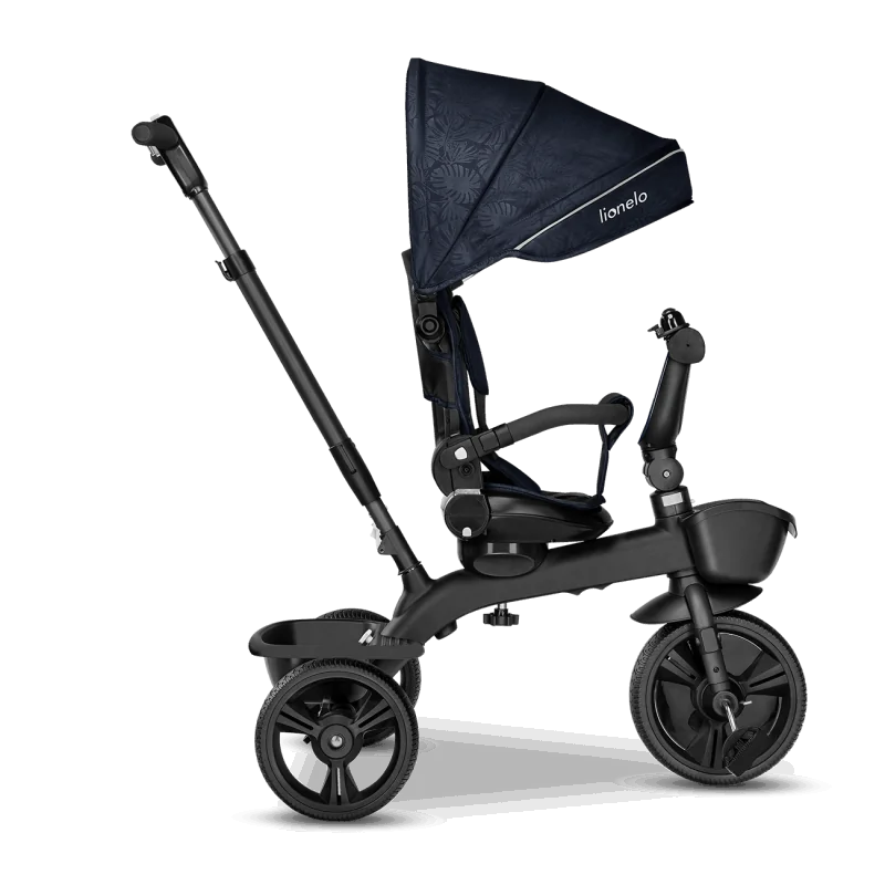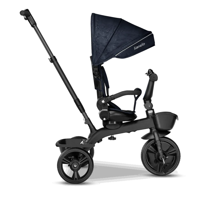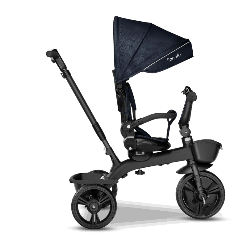 Vecāku kontrole ceļā, izmantojot rokturi.Trīsritenis vecākiem bērniem.Pagriežams sēdeklis – braukšana uz priekšu vai atpakaļ.Salokāms, pilnībā regulējams jumtiņš ar logu.Izturīga un viegla magnija sakausējuma konstrukcija.Viegli salikt.Gaismu atstarojošas detaļas lielākai drošībai.2 plaši grozi rotaļlietām, krūzīšu turētājs un slēgts maiss.Bez kamerām gumijas riepas ar protektoru – lieliska saķere.Brīvgaita un stūre.Vecuma diapazons: 18 mēneši un vecākiMaksimālais bērna svars: 25 kgAtzveltnes slīpums: 3 līmeņi