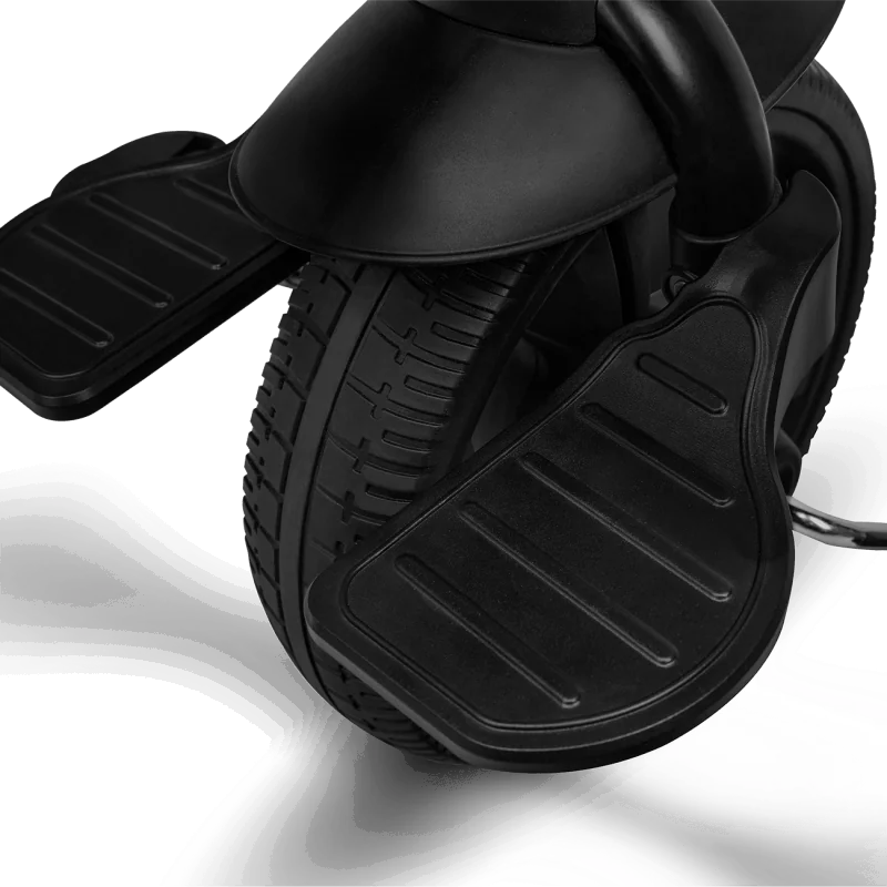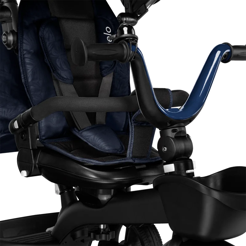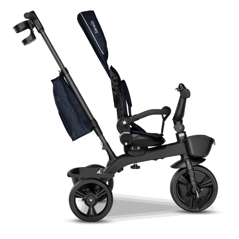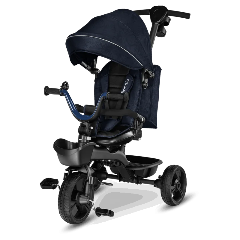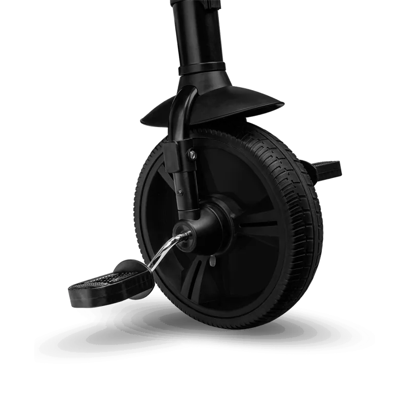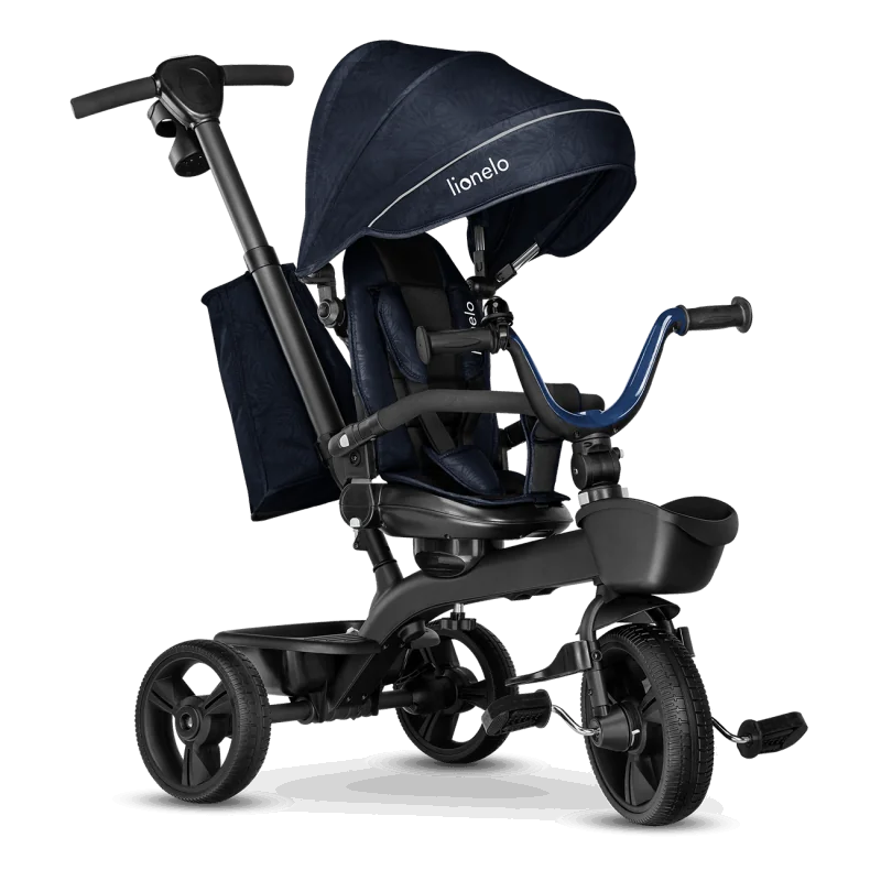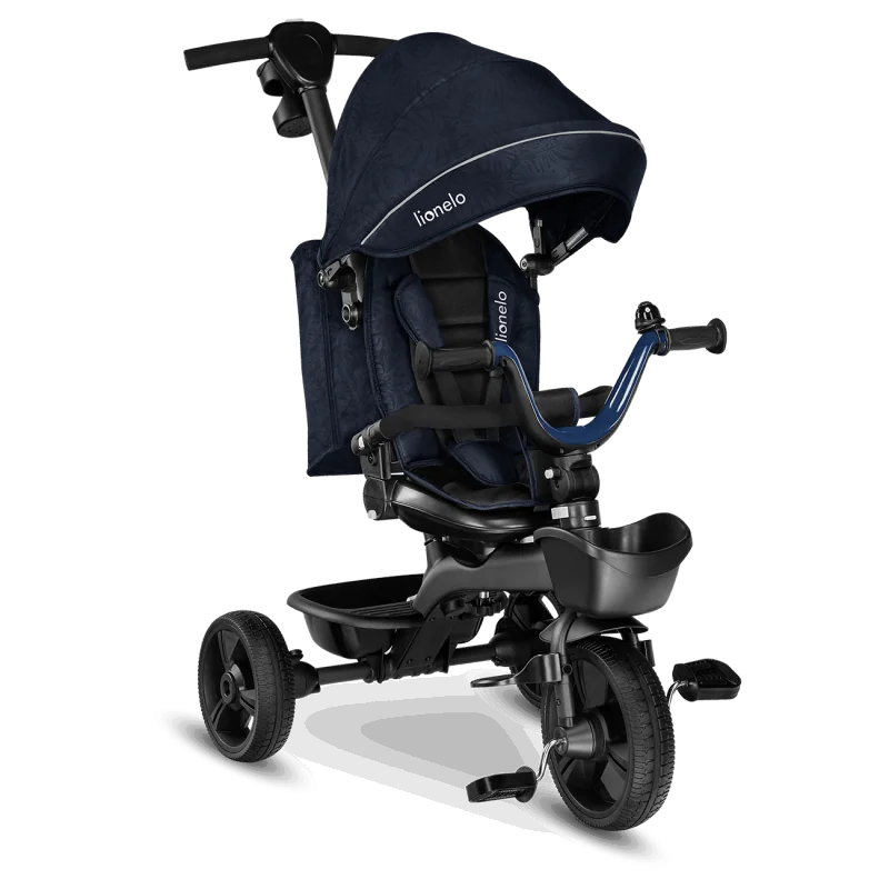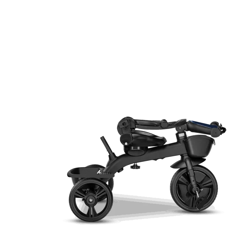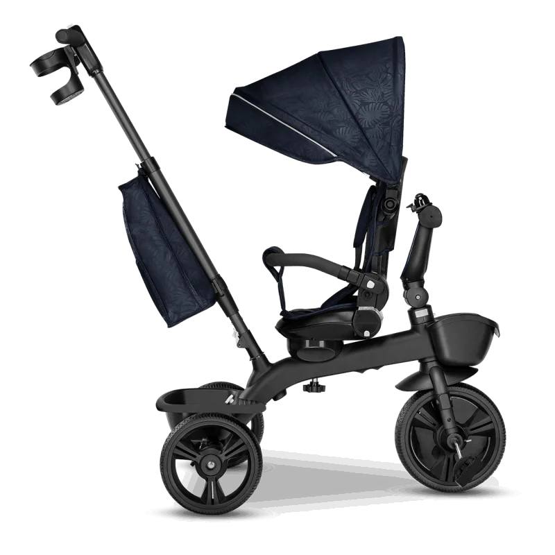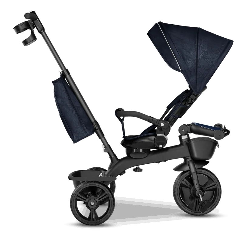 Vecāku kontrole ceļā, izmantojot rokturi.Trīsritenis vecākiem bērniem.Pagriežams sēdeklis – braukšana uz priekšu vai atpakaļ.Salokāms, pilnībā regulējams jumtiņš ar logu.Izturīga un viegla magnija sakausējuma konstrukcija.Viegli salikt.Gaismu atstarojošas detaļas lielākai drošībai.2 plaši grozi rotaļlietām, krūzīšu turētājs un slēgts maiss.Bez kamerām gumijas riepas ar protektoru – lieliska saķere.Brīvgaita un stūre.Vecuma diapazons: 18 mēneši un vecākiMaksimālais bērna svars: 25 kgAtzveltnes slīpums: 3 līmeņi