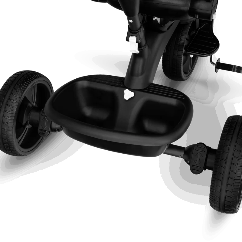 Vecāku kontrole ceļā, izmantojot rokturi.Trīsritenis vecākiem bērniem.Pagriežams sēdeklis – braukšana uz priekšu vai atpakaļ.Salokāms, pilnībā regulējams jumtiņš ar logu.Izturīga un viegla magnija sakausējuma konstrukcija.Viegli salikt.Gaismu atstarojošas detaļas lielākai drošībai.2 plaši grozi rotaļlietām, krūzīšu turētājs un slēgts maiss.Bez kameru gumijas riepas ar protektoru – lieliska saķere.Brīvgaita un stūre.Vecuma diapazons: 18 mēneši un vecākiMaksimālais bērna svars: 25 kgAtzveltnes slīpums: 3 līmeņi