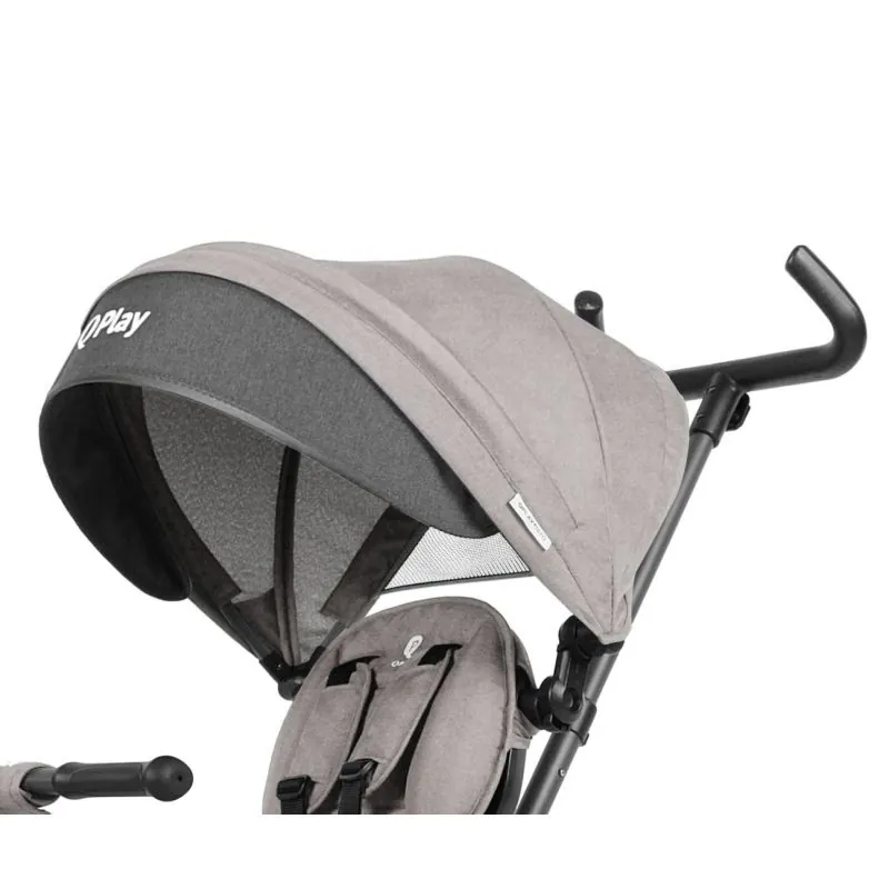 Brīvgaitas funkcija.„Brīvā rata“ funkcija.Piecu punktu drošības jostas ar pārvalkiem.Ērts, kontūrēts sēdeklis ar divpakāpju atzveltnes leņķa regulēšanu.Papildu atzveltnes regulēšanas atbalsts – aizsargā no pašizmaiņām atzveltnes leņķī.Noņemams sēdekļa pārvalks.Jumtiņš ar tīklu, kas ļauj novērot bērnu.Jumtiņa pārsegs noņemams ar rāvējslēdzēju.10 collu putu priekšējais ritenis - EVA.8 collu putu aizmugurējie riteņi - EVA.Priekšējam ritenim ir vāciņš, lai kāja neiesprūstu.Aizmugurē ir tvertne sīkumiem.Viegli tīrāms, noņemams aizsargājošs margas.Divu veidu kāju balsti – rāmī un pie sēdekļa.Vecāku roktura garuma regulēšana.Riteņi ar gultņiem.Aizmugurējā riteņa slēdzene - bremze.Pagrieziena ierobežotājs.Jostu regulēšana.Salokāms līdz maziem izmēriem.Atbalsta kāja – ļauj salocītu velosipēdu novietot stāvus.