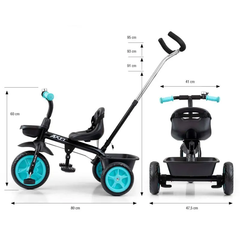Triratnieks AXEL tika izveidots, ņemot vērā bērnu ērtības un drošību. Lielisks risinājums aktīviem bērniem, kuriem ir garlaicīgi braukt ar ratiņiem.