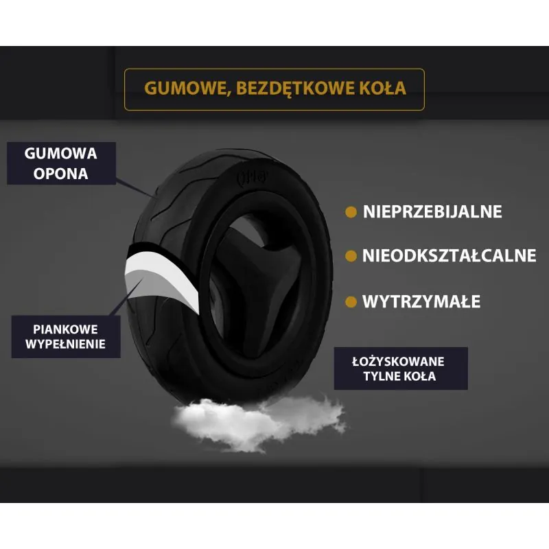 Gumijas riepas drošai un ērtai braukšanai.