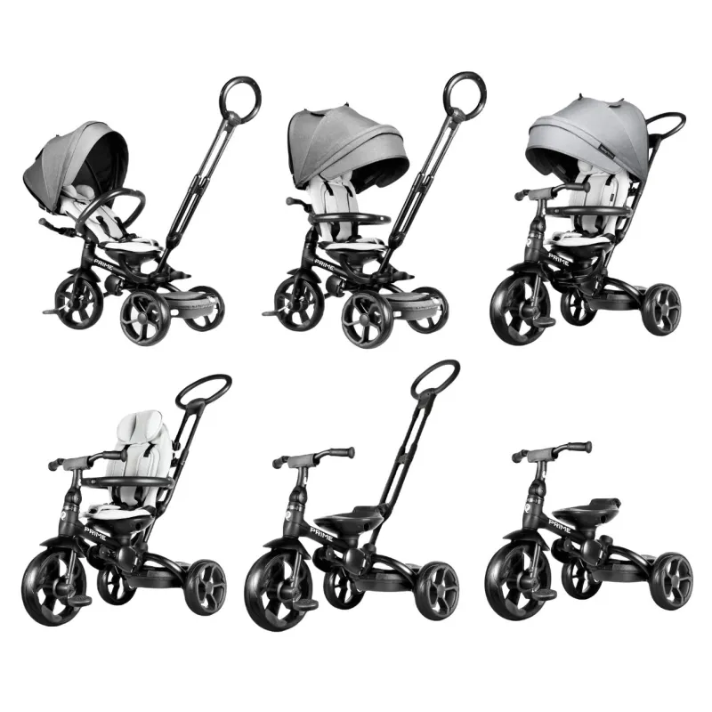 Trīsritenis - rati New Prime 6in1 aug kopā ar jūsu bērnu. Piemērots bērniem no 10 līdz 72 mēnešiem.