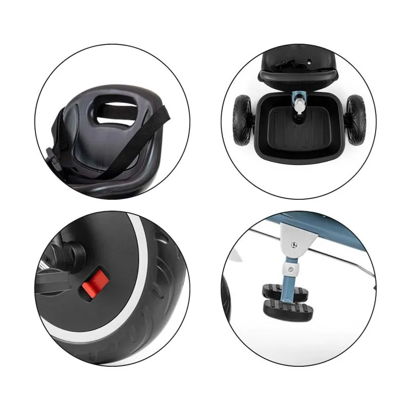 Krēsls trīsritenī ir ar regulējamu attālumu no stūres, kas ļauj pielāgot trīsriteni atbilstoši bērna augumam;