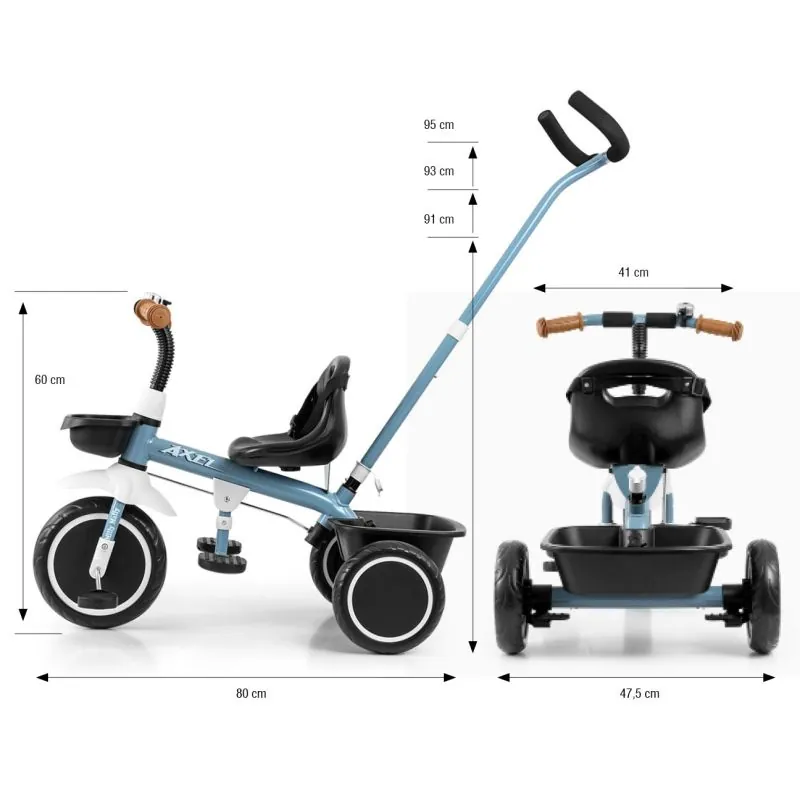 Trīsritenis AXEL tika izveidots, ņemot vērā bērnu ērtības un drošību. Lielisks risinājums aktīviem bērniem, kuriem ir garlaicīgi braukāties ar ratiņiem. Piemērots bērniem no 18 mēnešiem.