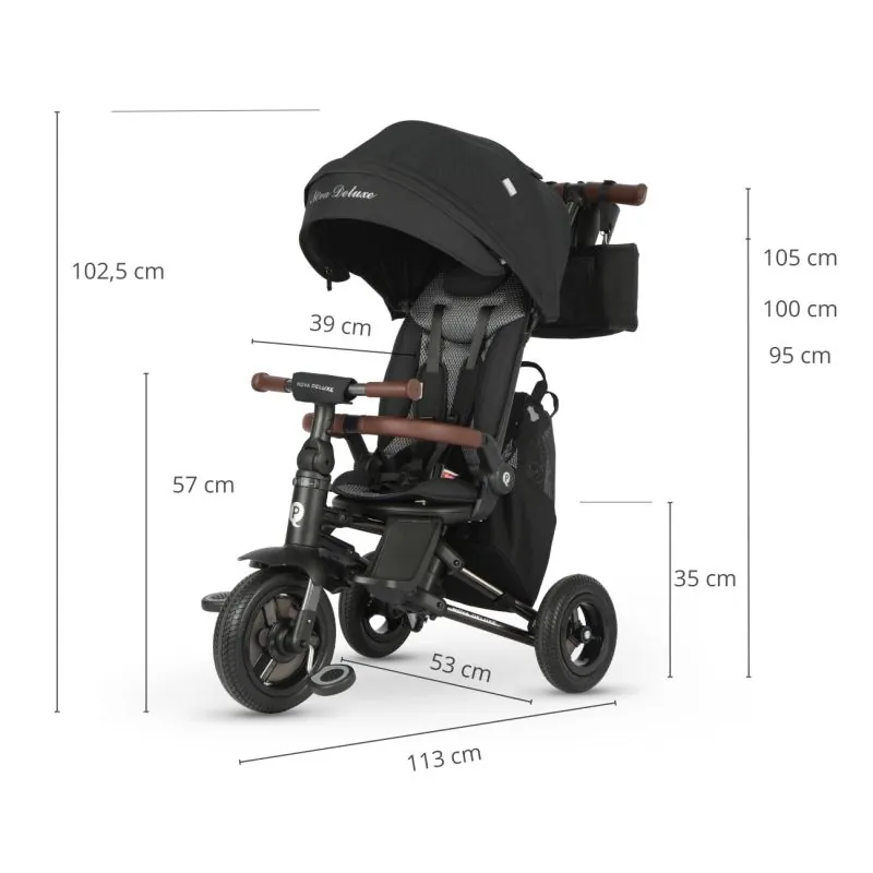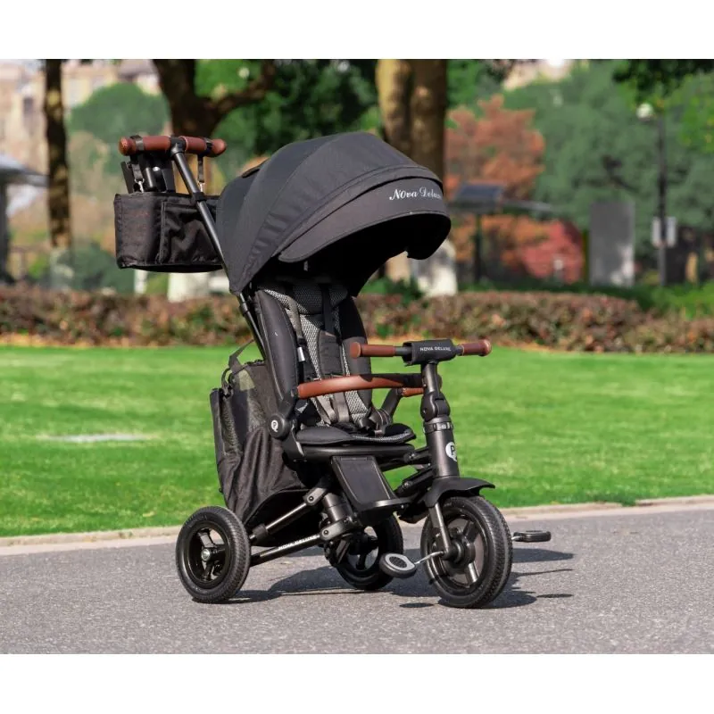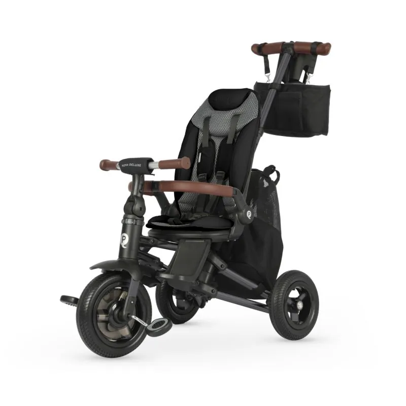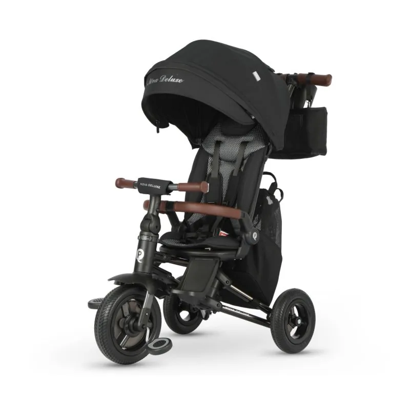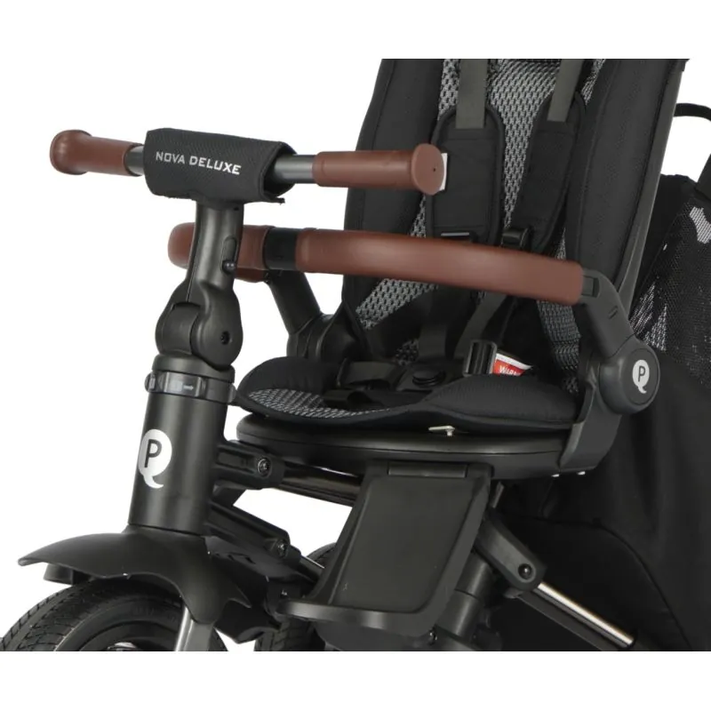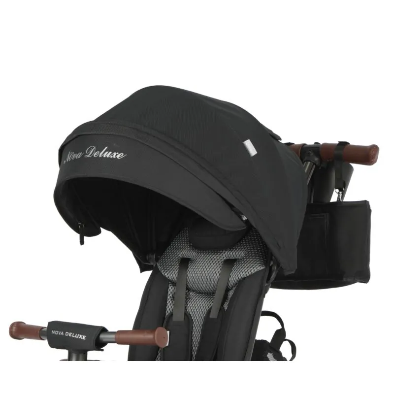 Qplay trīsritenis Nova Deluxe ir stabils un drošs, tam ir moderna alumīnija konstrukcija, ērts konturēts „360“ sēdeklis, kas ļauj braukt uz priekšu vai atpakaļ braukšanas virzienā. Montāžai nav nepieciešami nekādi instrumenti – ātrās salocīšanas sistēma ļauj salocīt trīsriteni ar dažiem vienkāršiem kustībām.