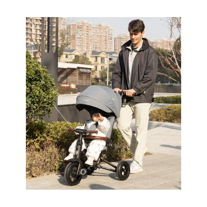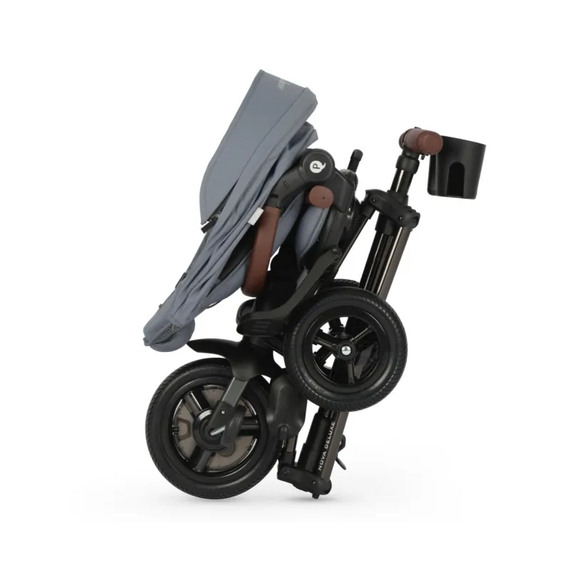 Qplay trīsritenis Nova Deluxe ir stabils un drošs, tam ir moderna alumīnija konstrukcija, ērts konturēts „360“ sēdeklis, kas ļauj braukt uz priekšu vai atpakaļ braukšanas virzienā. Montāžai nav nepieciešami nekādi instrumenti – ātrās salocīšanas sistēma ļauj salocīt trīsriteni ar dažiem vienkāršiem kustībām.