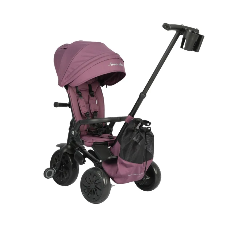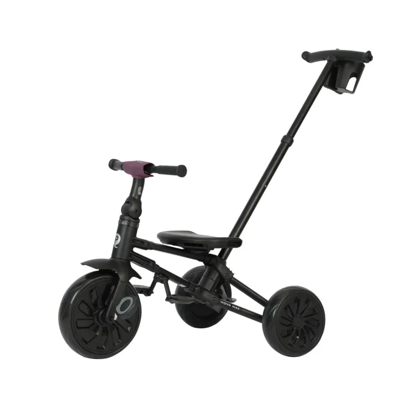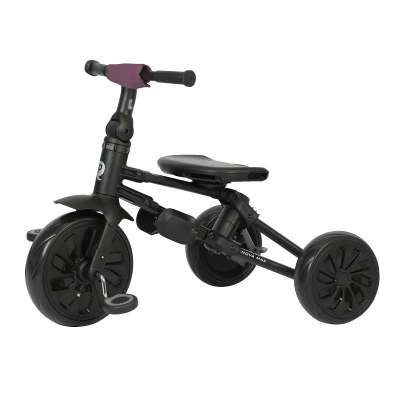 Qplay trīsritenis Nova Max ir stabils un drošs, tam ir mūsdienīgs alumīnija rāmis, ērts kontūrēts "360" sēdeklis, kas ļauj braukt uz priekšu vai atpakaļ braukšanas virzienā. Montāžai nav nepieciešami nekādi instrumenti – ātrā saliekamā sistēma ļauj salocīt trīsriteni ar dažām vienkāršām kustībām.