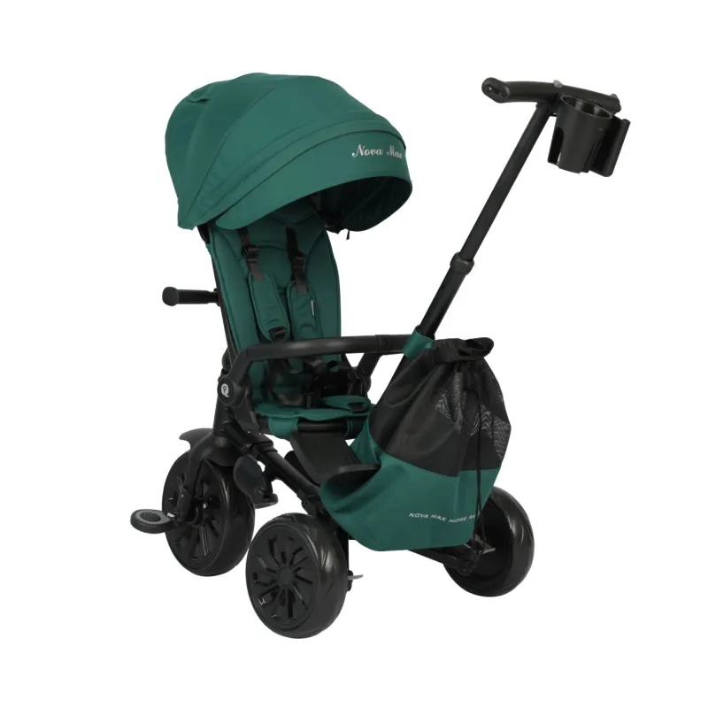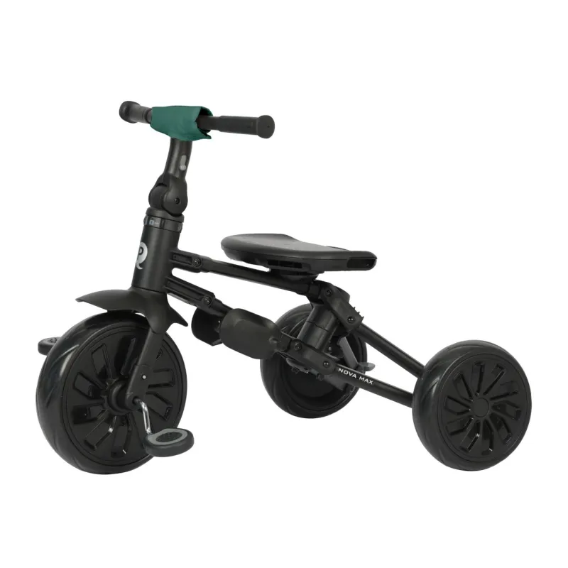 Qplay trīsritenis Nova Max ir stabils un drošs, tam ir mūsdienīgs alumīnija rāmis, ērts kontūrēts "360" sēdeklis, kas ļauj braukt uz priekšu vai atpakaļ braukšanas virzienā. Montāžai nav nepieciešami nekādi instrumenti – ātrā saliekamā sistēma ļauj salocīt trīsriteni ar dažām vienkāršām kustībām.