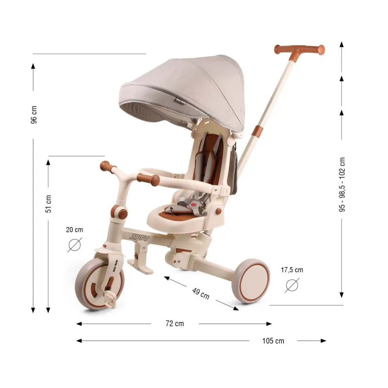 Milly Mally trīsritenis 5in1 Zippy, Bēšs