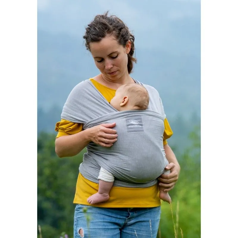 Trikotāžas bērnu slinga Manduca Sling – vienmēr ērta, vienmēr pielāgojama, vienmēr pieguļoša.