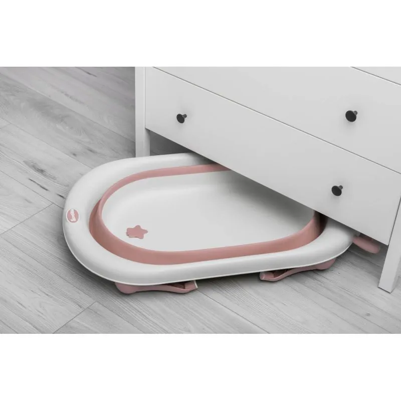 Var izmantot no dzimšanas līdz brīdim, kad bērns ir gatavs peldēties tradicionālajā vannā. Izgatavots no izturīga un ādai draudzīga materiāla. Kad temperatūra paaugstinās līdz 38 grādiem, vannas korķis mainīs krāsu, norādot, ka bērnam ir nedroši. Ūdeni varēsiet viegli izliet no vannas, to nepaceļot, un ērtais iepakojums ar rokturi būs noderīgs ceļojumu laikā.Ērti salokāma, ātri izplešas.Ļoti kompakta, aizņem maz vietas un ir viegli kopjama.Ar neslīdošām kājiņām.Izgatavota no bērniem droša plastmasas.Izmēri: 82 x 51 x 24 cm. (salocīta 10 cm.), svars: 2,2 kg.