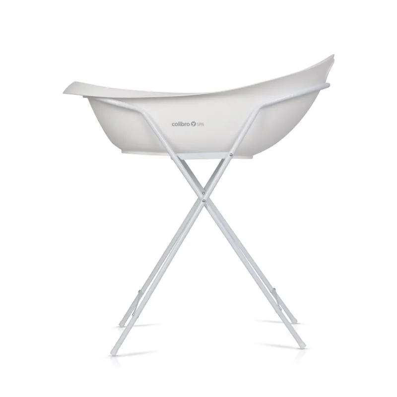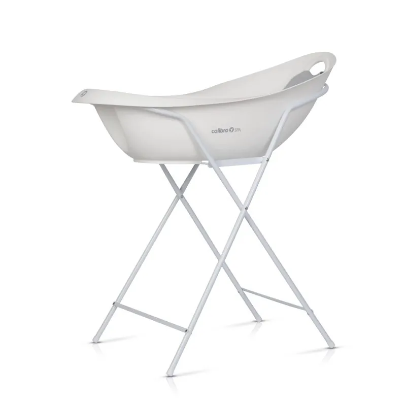 Stends ir speciāli izstrādāts COLIBRO SPA vannai, tāpēc tas perfekti pieguļ, un vanna ir ļoti stabila. Vannas pamatne tiek novietota uz speciāla pamata un ir 58 cm augsta. Tas ir optimāls un ergonomisks augstums vecākiem, nodrošinot gan komfortu, gan pilnīgu kontroli peldot bērnu. UZMANĪBU! Stends ir paredzēts lietošanai kopā ar vannu tikai bērniem līdz 6 mēnešiem, kuri vēl nevar sēdēt paši. Nelietojiet stendu, kad jūsu bērns sāk sēdēt pats vai rāpties uz vannas malām. Peldot bērnu, kas vecāks par 6 mēnešiem, novietojiet vannu uz zemes, vannā vai dušas kabīnē.