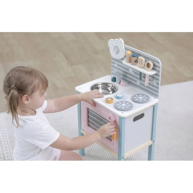Koka virtuvīte "Viga" ir sapņu virtuve mazam pavāram.Bērni atdarina savus vecākus - tāpēc viņi vēlas sagatavot gardumus visai ģimenei.Mācoties izmantot virtuves rīkus, var lieliski veicināt bērnu radošo domāšanu un iztēli.Pagriežami un nospiežami rokturi.Stabila un izturīga virtuves konstrukcija.Virtuvīte izgatavota no lakotas koksnes un krāsota ar netoksiskām krāsām.Atbilst drošības standartiem (EN71 un ASTM).Rotaļlieta paredzēta bērniem no 3 gadu vecuma.