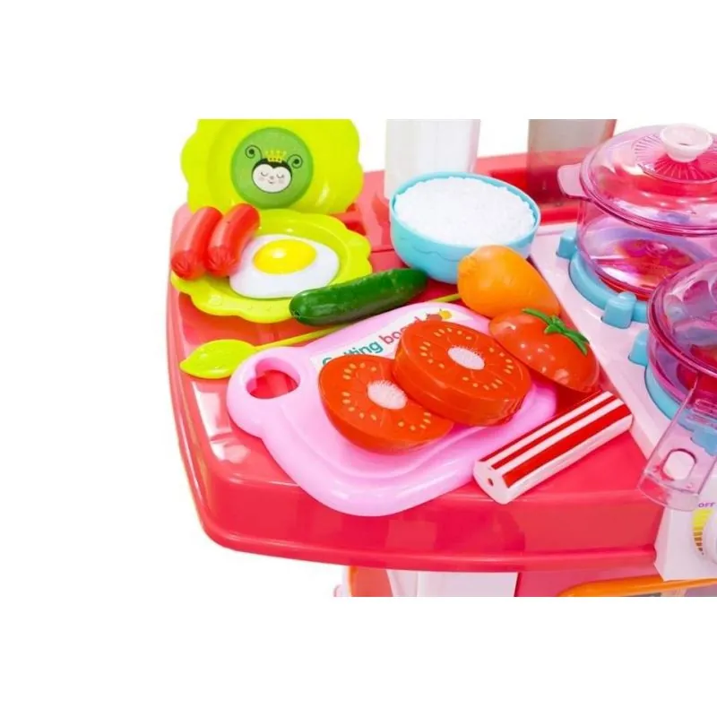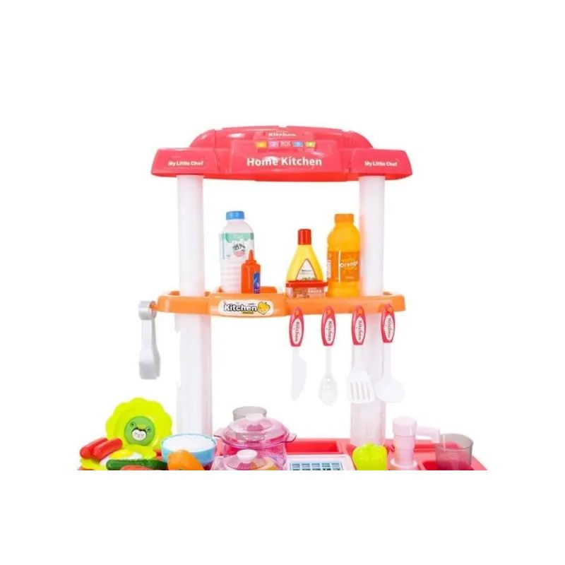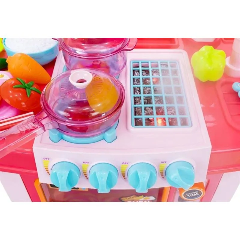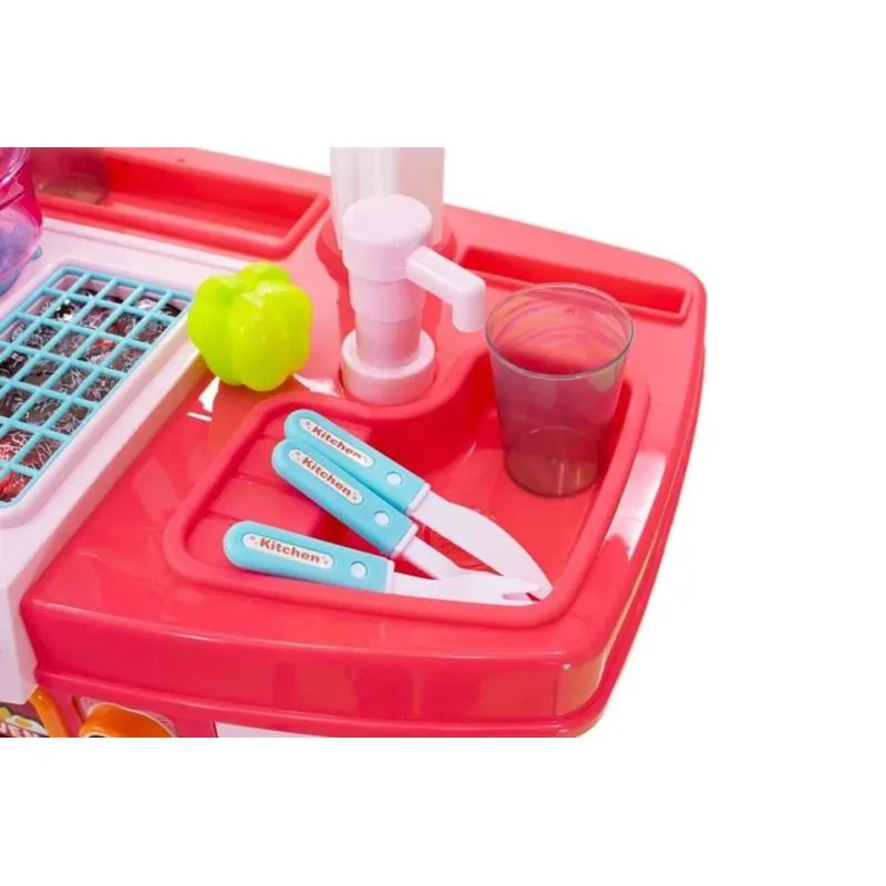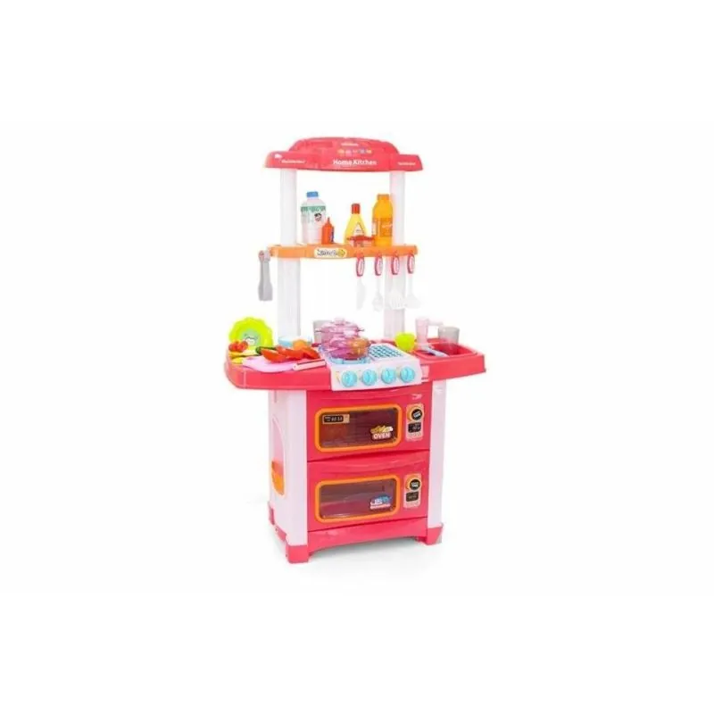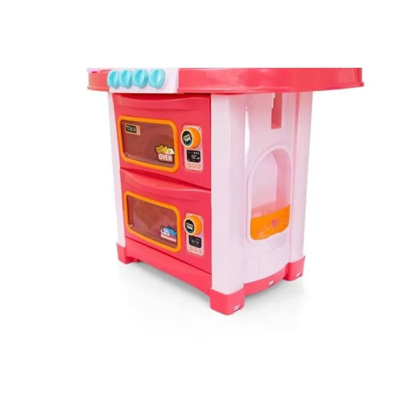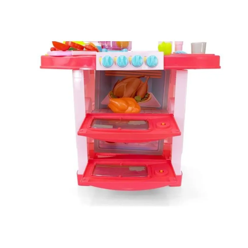 Spēļu komplekts ir izgatavots košās krāsās un aprīkots ar dažādiem spēles elementiem.Gaismas un skaņas efekti un trauku komplekts padarīs spēli vēl jautrāku.Rotaļlieta izgatavota no augstas kvalitātes un triecienizturīgas plastmasas.Šajā rotaļu virtuvē var atrast visu - izlietni, grilu, cepeškrāsni.Komplektā ir arī daudz rotaļu pārtikas produktu un trauku.Nepieciešamas 3 AA baterijas (nav iekļautas komplektā).Piemērots bērniem no 3 gadiem.