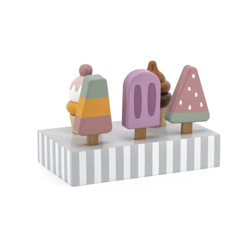 Skaistu krāsu saldējuma komplekts, kas izgatavots, pievēršot uzmanību detaļām.Lieliska apdare, burvīgas krāsas, praktiskums un funkcionalitāte.Spēlēt mājās vai ārā un atdarināt pieaugušo lomas - tas ir radošs veids, kā veidot sociālās attiecības, kā arī attīstīt un mācīties vārdu krājumu.Lielisks virtuves aksesuāru papildinājums.Saldējums tiek novietots uz koka statīva, kas ir lieliski piemērots uzglabāšanai un demonstrēšanai.Visi komplekti ir izgatavoti tikai no koka.Krāsots ar netoksiskām krāsām, tāpēc tas ir pilnīgi drošs bērnam.Rotaļlieta attīsta bērna radošumu un sociālās prasmes, lomu spēles, roku prasmes, veiklību, koncentrēšanos, motorisko koordināciju, iztēli un sajūtas.