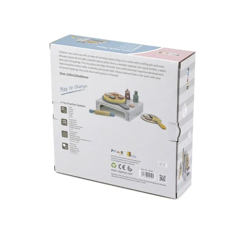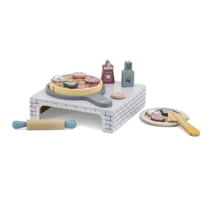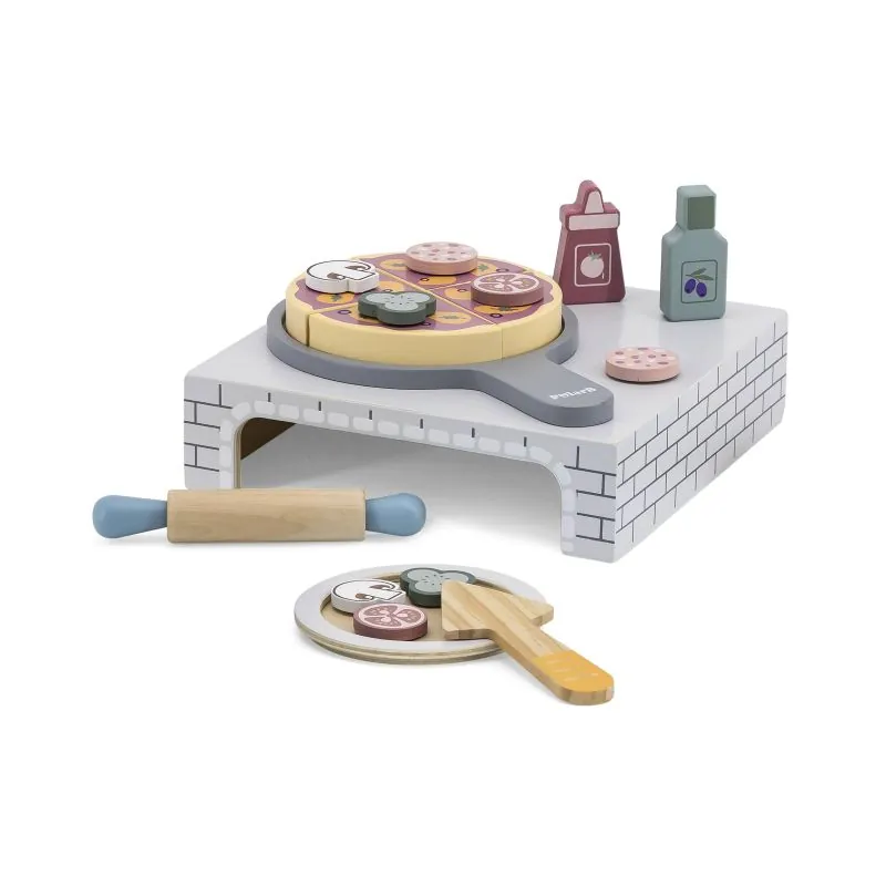 Jūs varat izveidot savu iecienīto picu.Pateicoties šai rotaļlietai, bērns var atdarināt pieaugušos un attīstīt kulinārijas aizraušanos.Viņi arī var jautri gatavot ēdienu citiem un pavadīt laiku grupā.Komplektā ietilpst koka pica, lāpstiņa, divas mērces pudeles, šķīvis, rullis un daudz picas piedevu.Pēc picas sagatavošanas pēc savas gaumes, ievietojiet picu īpašā lāpstiņā cepeškrāsnī (iekļauta komplektā).Pica ir sadalīta 4 daļās (savienojama ar Velcro).Picas piedevas tiek piestiprinātas ar Velcro uzlīmi, pateicoties kurai bērni var viegli tās uzlikt un noņemt.Izgatavots no augstākās kvalitātes bērniem un videi draudzīgiem materiāliem - lakota koksne un krāsots ar netoksiskām krāsām.Rotaļlieta attīsta iztēli, sensoriku, motoriskās prasmes, roku un acu koordināciju.