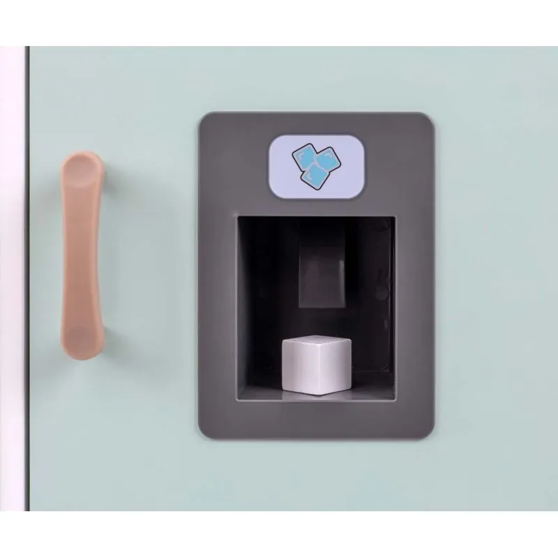 Atveramajās durvīs ir caurspīdīga krūze ar 3 ledus kubiņiem;