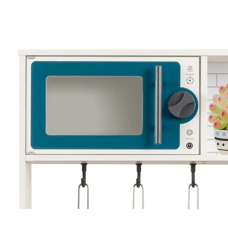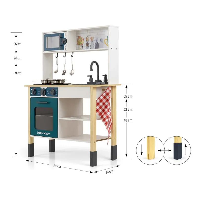 Pasteļu krāsu koka virtuvīte ar virtuves piederumu komplektu. Ieteicams bērniem no 3 gadu vecuma.