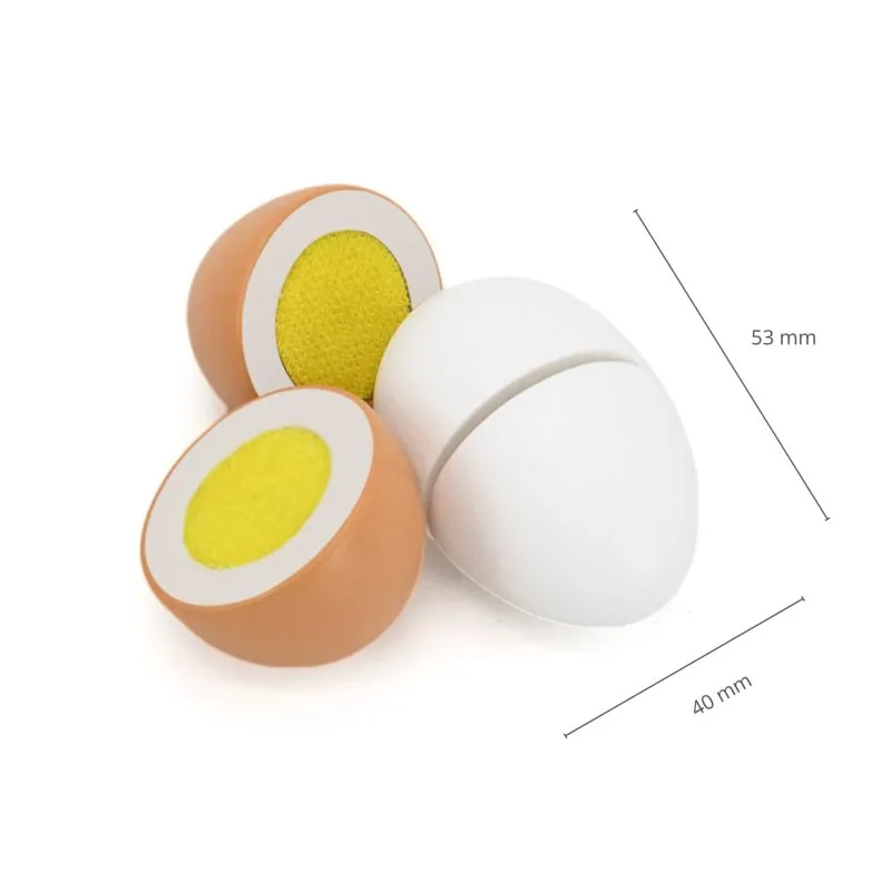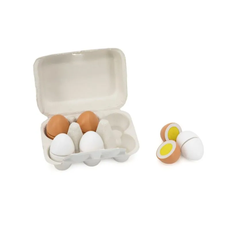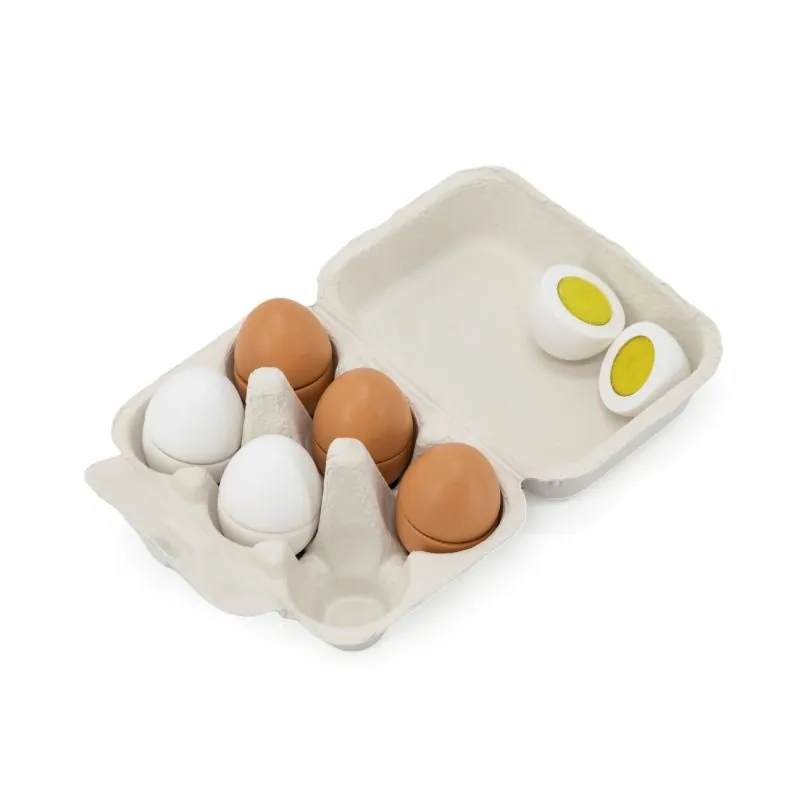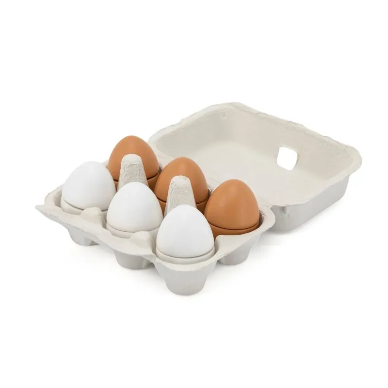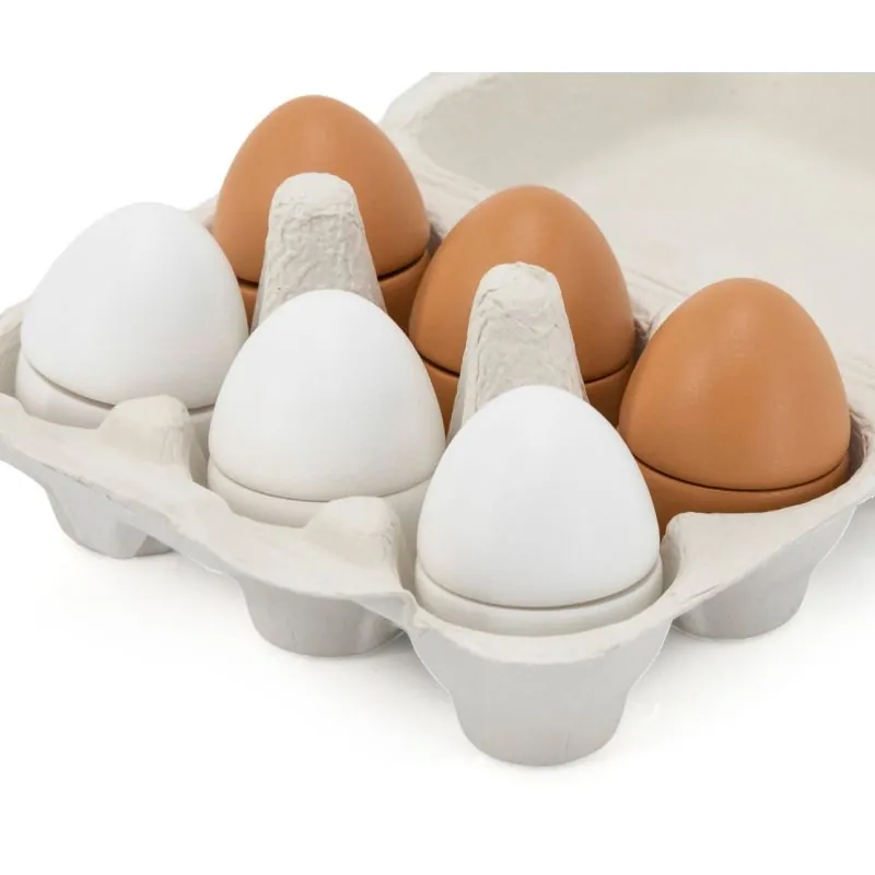 Komplektā ietilpst 6 gab. (3 brūnas un 3 baltas) olas ērtā kastītē;