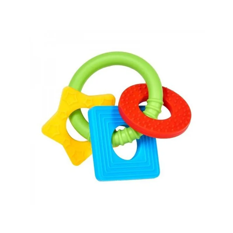 Droši košļāšanai. Ērti turēt mazās rociņās. Ergonomiska forma, tāpēc bērnam ir vieglāk sasniegt pat tālākās mutes dobuma vietas. Nesatur bisfenolu BPA.Ieteicams mazuļiem no 3 mēnešu vecuma.