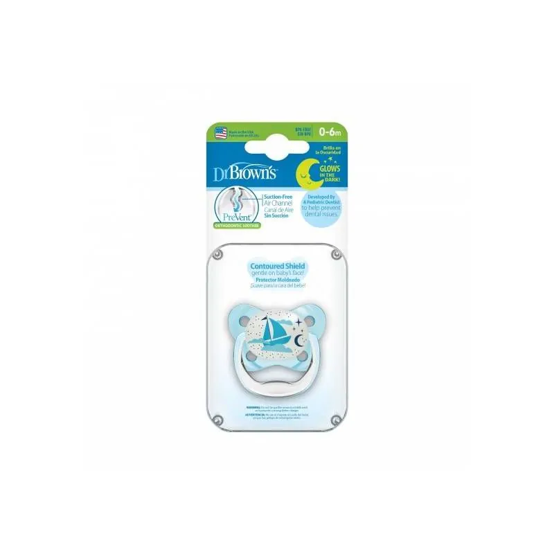 DR. BROWN'S tumsā spīdošs knupītis PreVent BUTTERFLY, zils no 0-6 mēn., 1 gab.