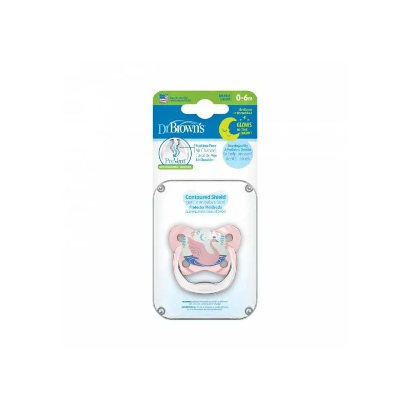 DR. BROWN'S tumšā spīdošā knupītis PreVent BUTTERFLY, rozā no 0-6 mēn., 1 gab.