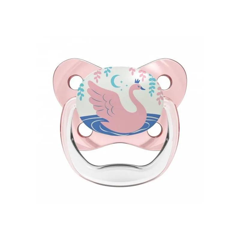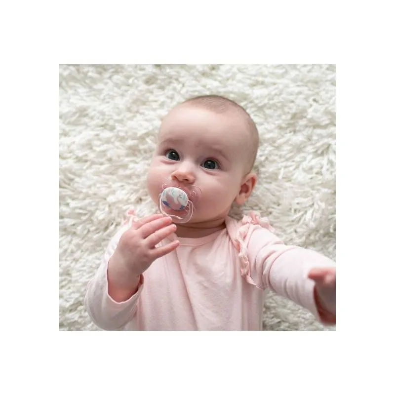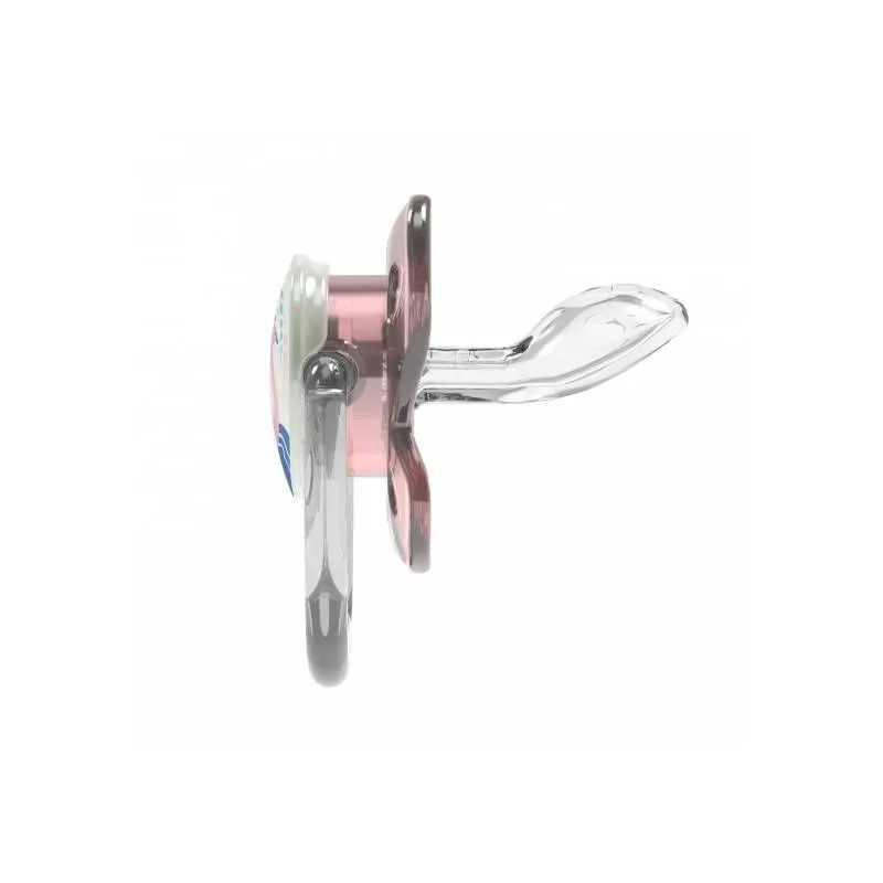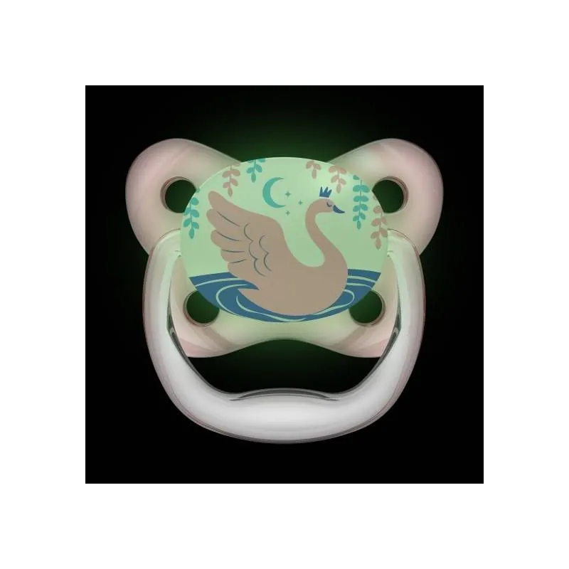 Zīdaiņa galviņa tumsā spīd, tāpēc zīdaiņu ir ērti atrast naktī gultiņā.Ar patentētu gaisa kanālu, kas samazina spiedienu uz aukslējām, kad bērns zīž.Izstrādāts bērnu zobārsta.Ļoti plāns, minimāli ietekmē bērna muti, samazina nepareiza sakodiena iespējamību.Pareizai mutes attīstībai un mēles pozīcijai.Īpaša tauriņa forma nodrošina vaigiem un degunam lielāku komfortu.Bez bisfenola BPA.