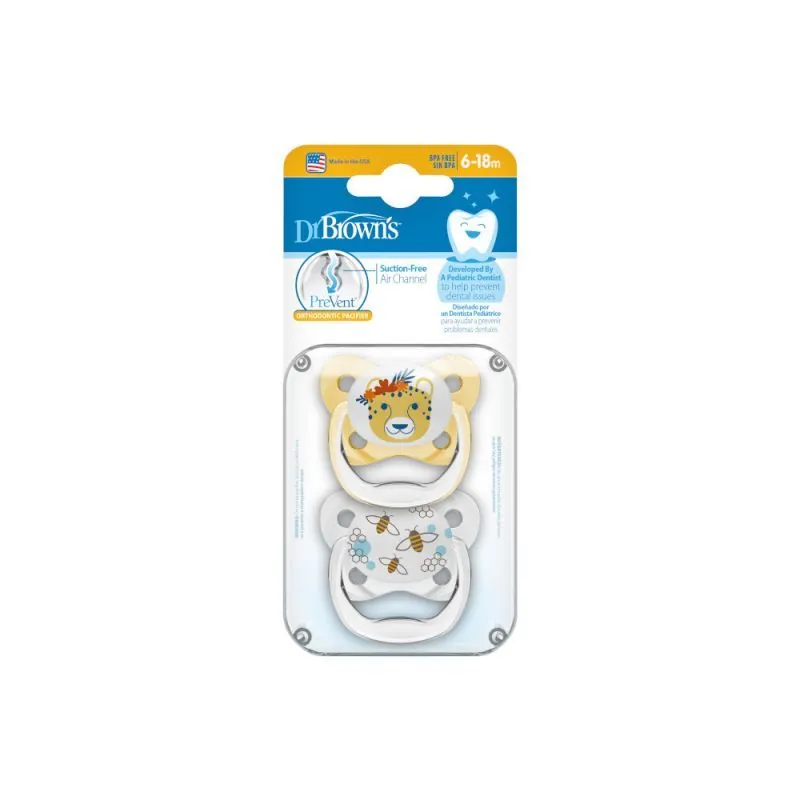 DR.BROWN'S knupīši PREVENT BUTTERFLY 6-18 mēneši, dzelteni