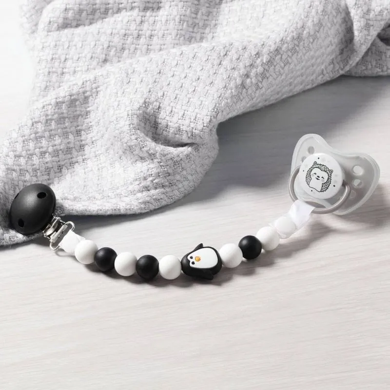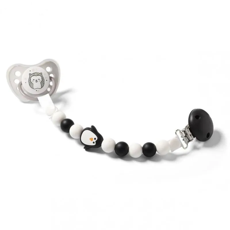 Knupīša turētājs atvieglo vecāku dzīvi, atrisinot knupīša izkrišanas vai pazaudēšanas problēmu. Turklāt to ir ļoti viegli piestiprināt, un metāla klipsi var ar vienu roku piestiprināt pie bērna drēbēm.Izgatavots no silikona – izturīgiem un drošiem materiāliem