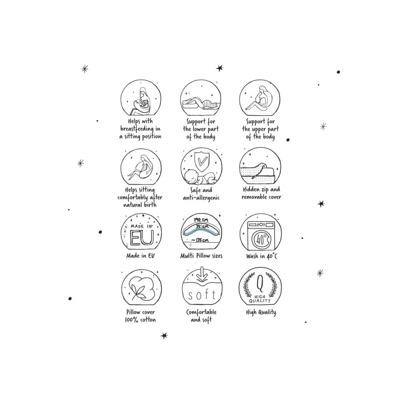 Ceba Baby Duo tai atpalaiduojanti pagalvė, idealiai tinkanti kiekvienai moteriai paskutiniais nėštumo mėnesiais, gimdymo metu arba maitinant kūdikį;