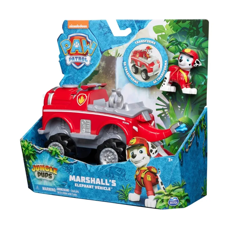 Keliaukite į džiungles su Maršalu! Šunyčių patrulių gelbėjimo mašina, kuri transformuojasi į dramblį. Skirta vaikams nuo 3 metų amžiaus.