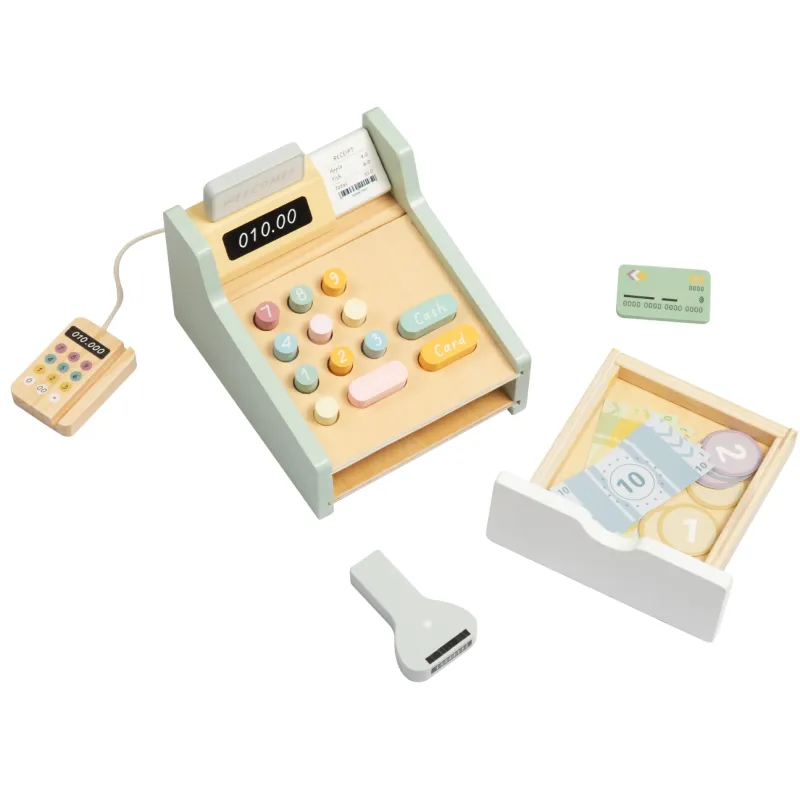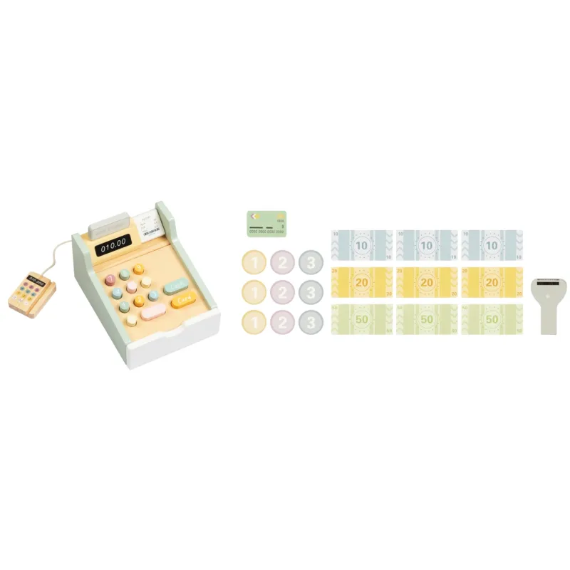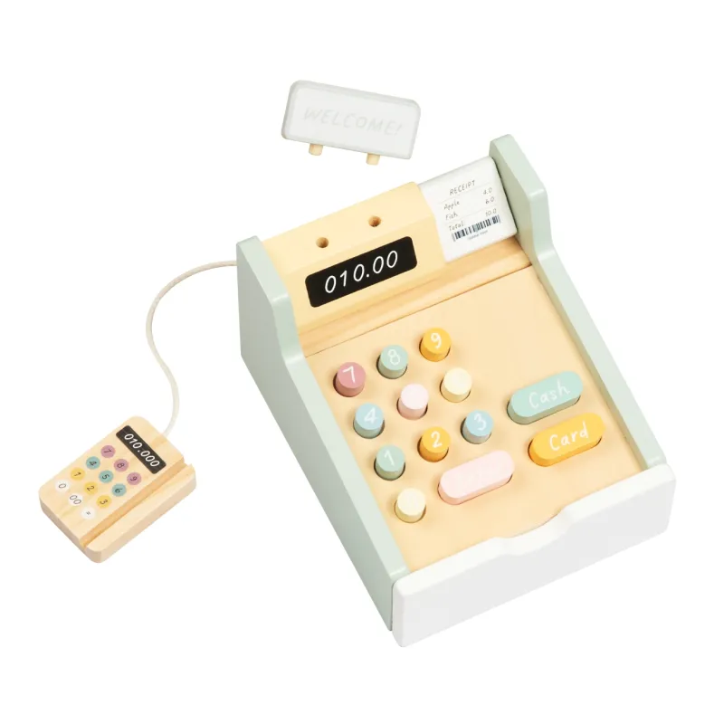 Tooky Toy – tai gražiai pagamintas medinis kasos aparatas vaikams, kuris bet kokį žaidimo laiką paverčia tikrovišku ir įtraukiančiu nuotykiu. Skirtas vaikams nuo 3 metų amžiaus.