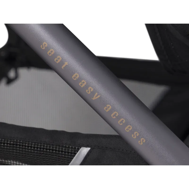 Pirkinių krepšelis po vežimėliu (lengva prieiga prie krepšelio dėl atvarto gale);