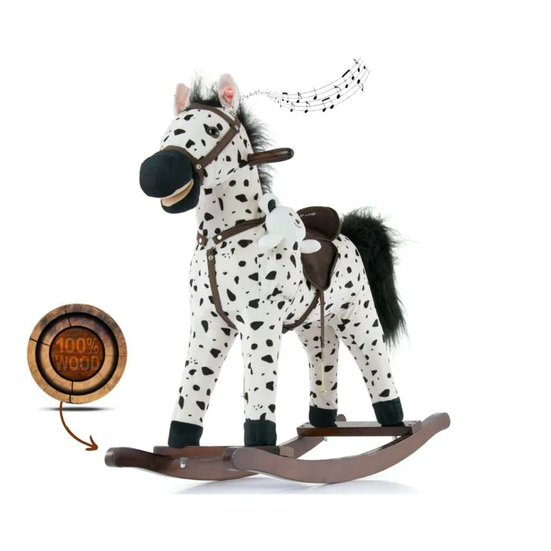 Minkštas supamasis arkliukas - apie tokį žaislą svajoja kiekvienas vaikas, be tradicinės siūbavimo funkcijos jis turi daug papildomų linksmų funkcijų;