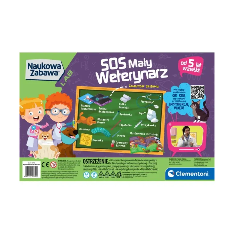 Su Clementoni mažojo veterinaro rinkiniu vaikai patirs tikro gyvūnų gydytojo vaidmenį. Skirtas vaikams nuo 5 metų amžiaus.