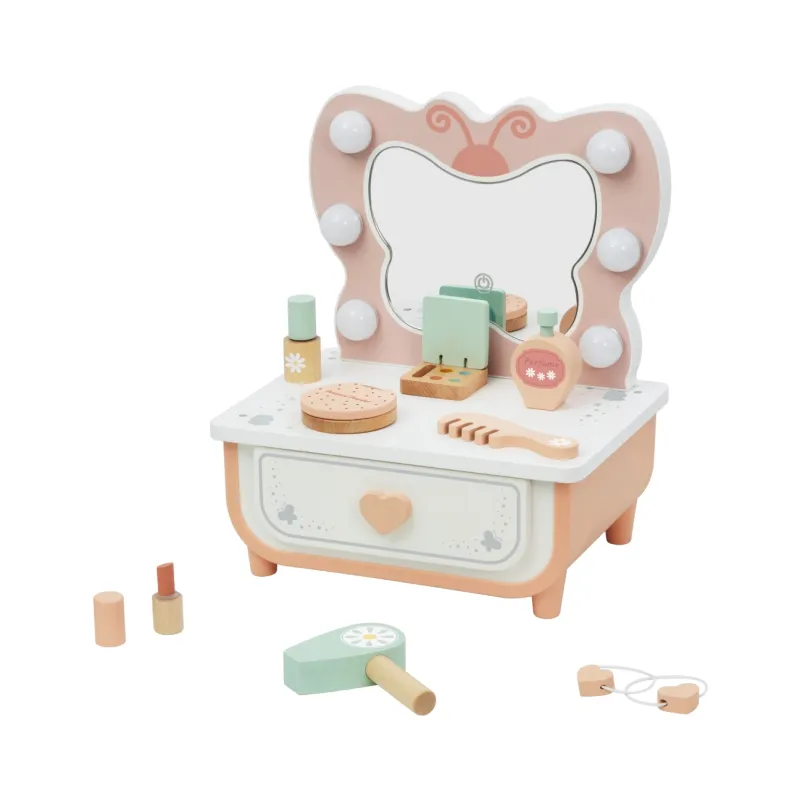 Tooky Toy - tualetinis staliukas yra žavus medinis stiliaus ir grožio žaidimų rinkinys, skirtas vaikams nuo 3 metų amžiaus.