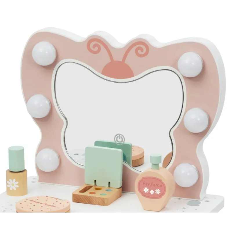 Tualetinis staliukas su drugelio formos veidrodžiu su imitacinėmis lemputėmis;